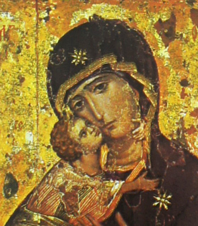 La tavola riproduce la Theotokos di Vladimir, nota anche come Madre di Dio della Tenerezza, una delle icone ortodosse più venerate e famose al mondo.