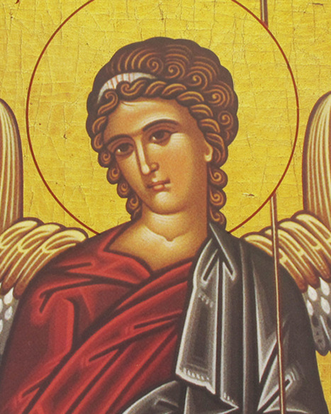 STOCK: Tavola raffigurante l'Angelo. L'immagine è una stampa su legno con bordo dorato.