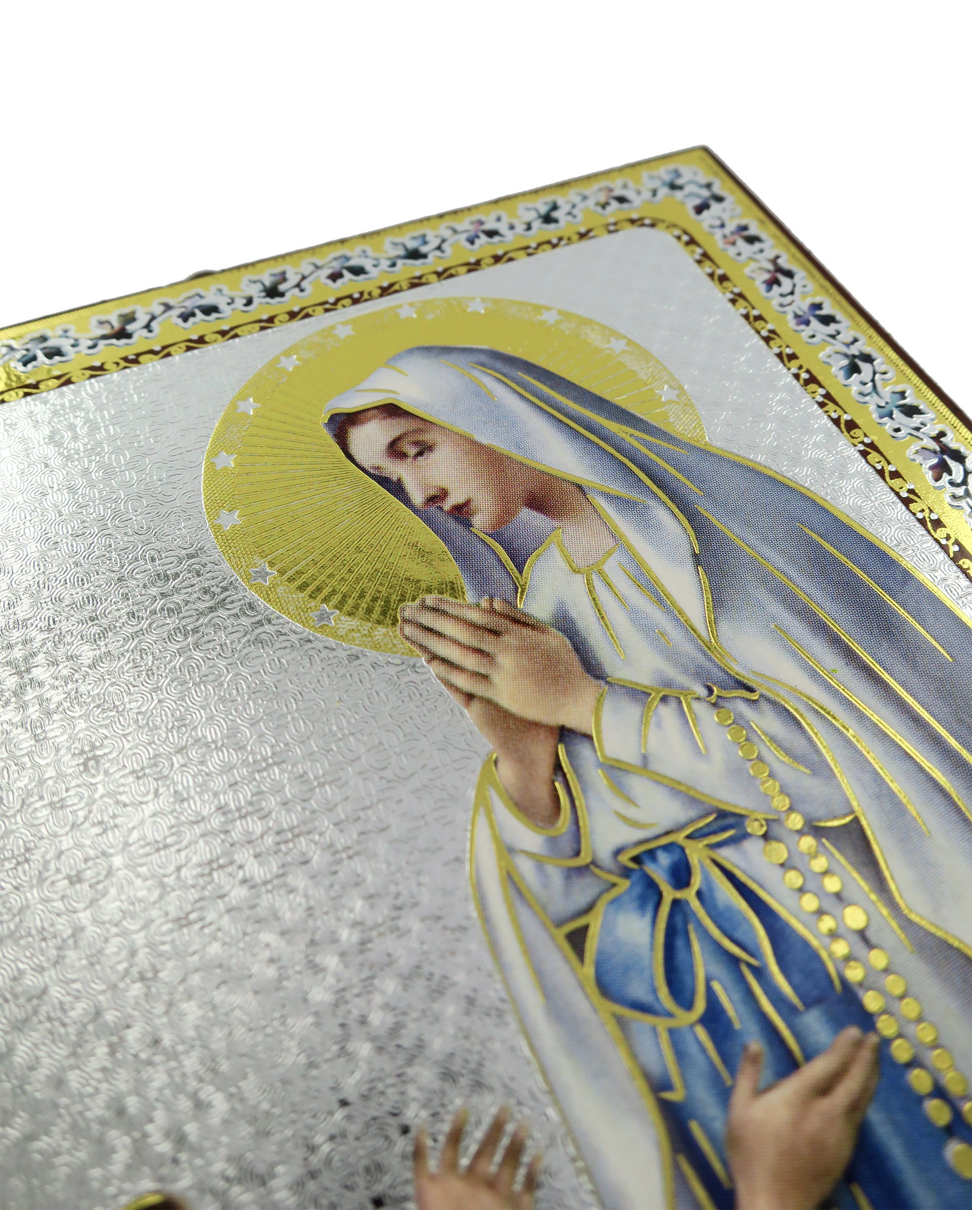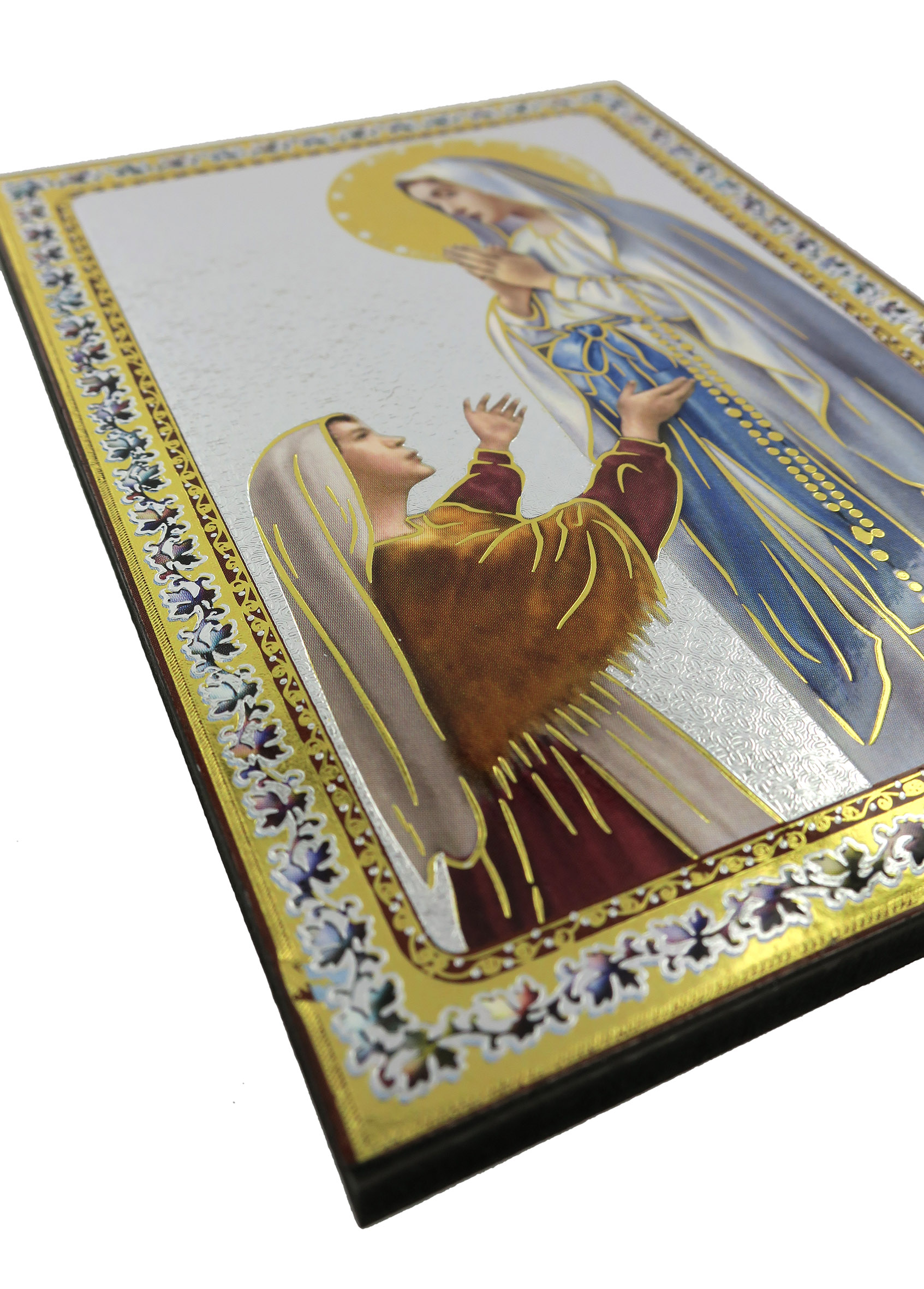 Tavola in legno raffigurante la Madonna di Lourdes.