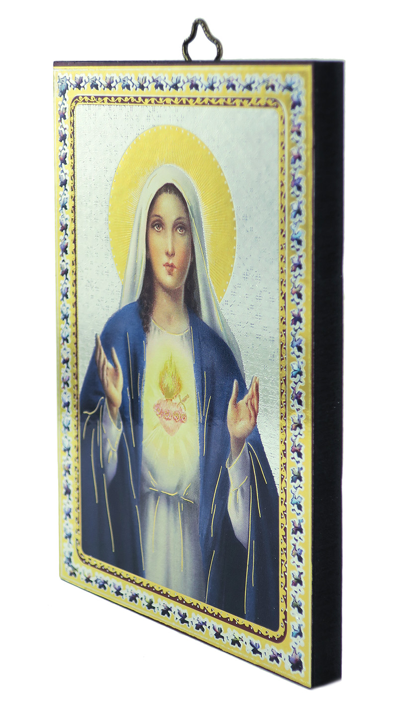 Tavola Sacro Cuore di Maria stampa su legno - 10 x 14 cm