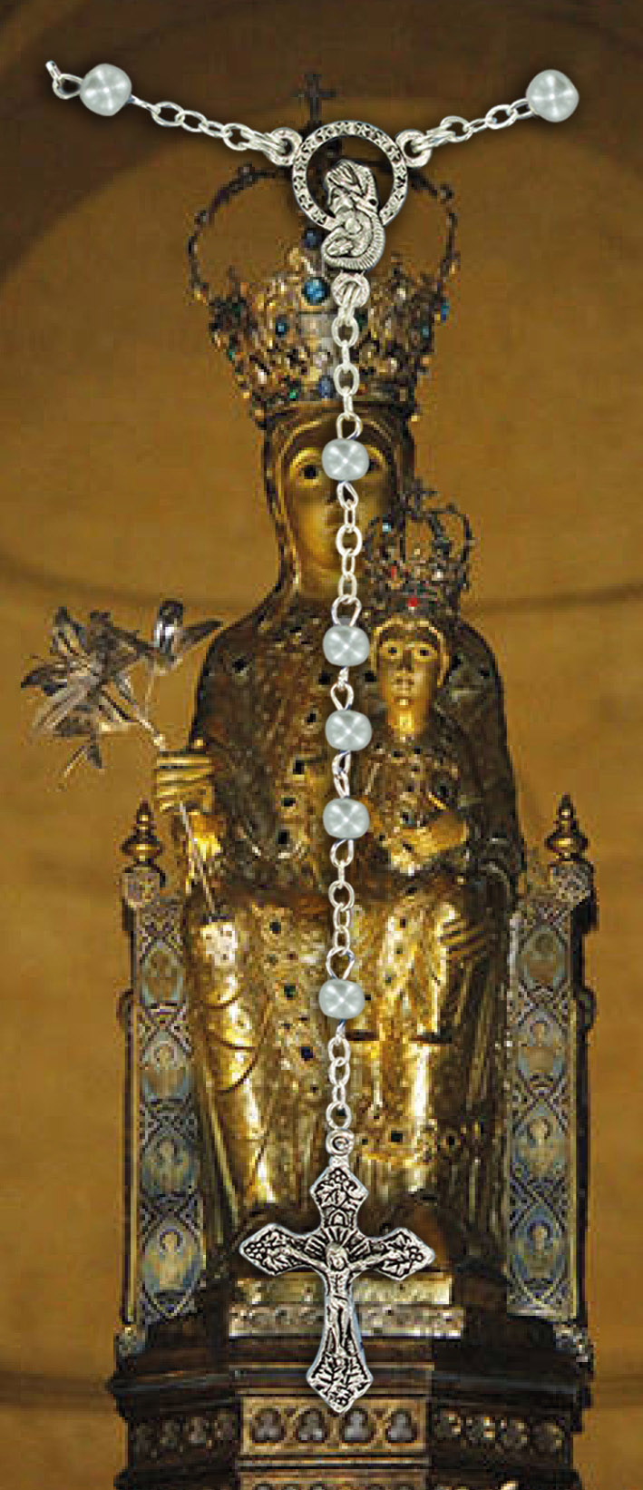 Il libretto, composto da 16 pagine, si presenta con una copertina in plastica trasparente e nell'interno vi è un piccolo rosario con i grani tipo perlina del diamero di mm 4.