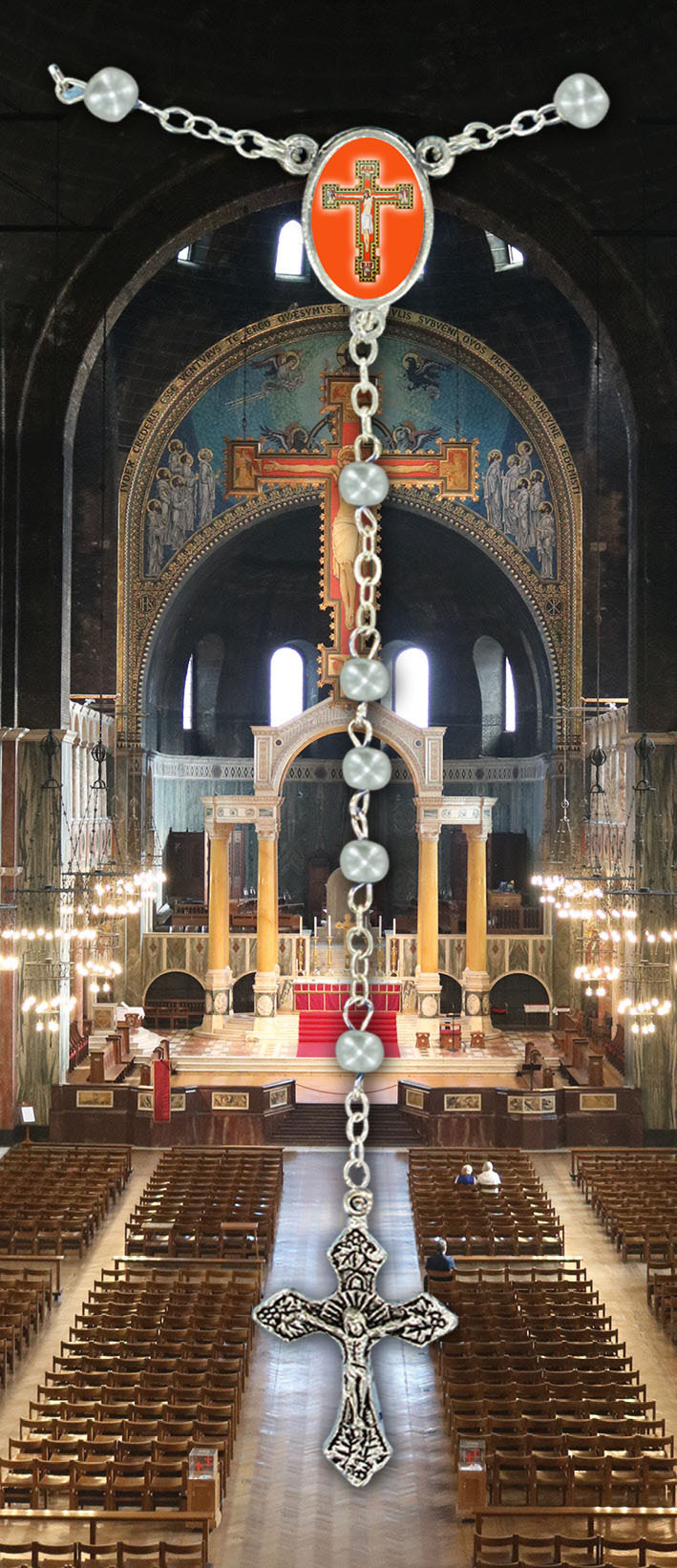 Il libretto, composto da 16 pagine, si presenta con una copertina in plastica trasparente e nell'interno vi è un piccolo rosario con i grani tipo perlina del diamero di mm 4.