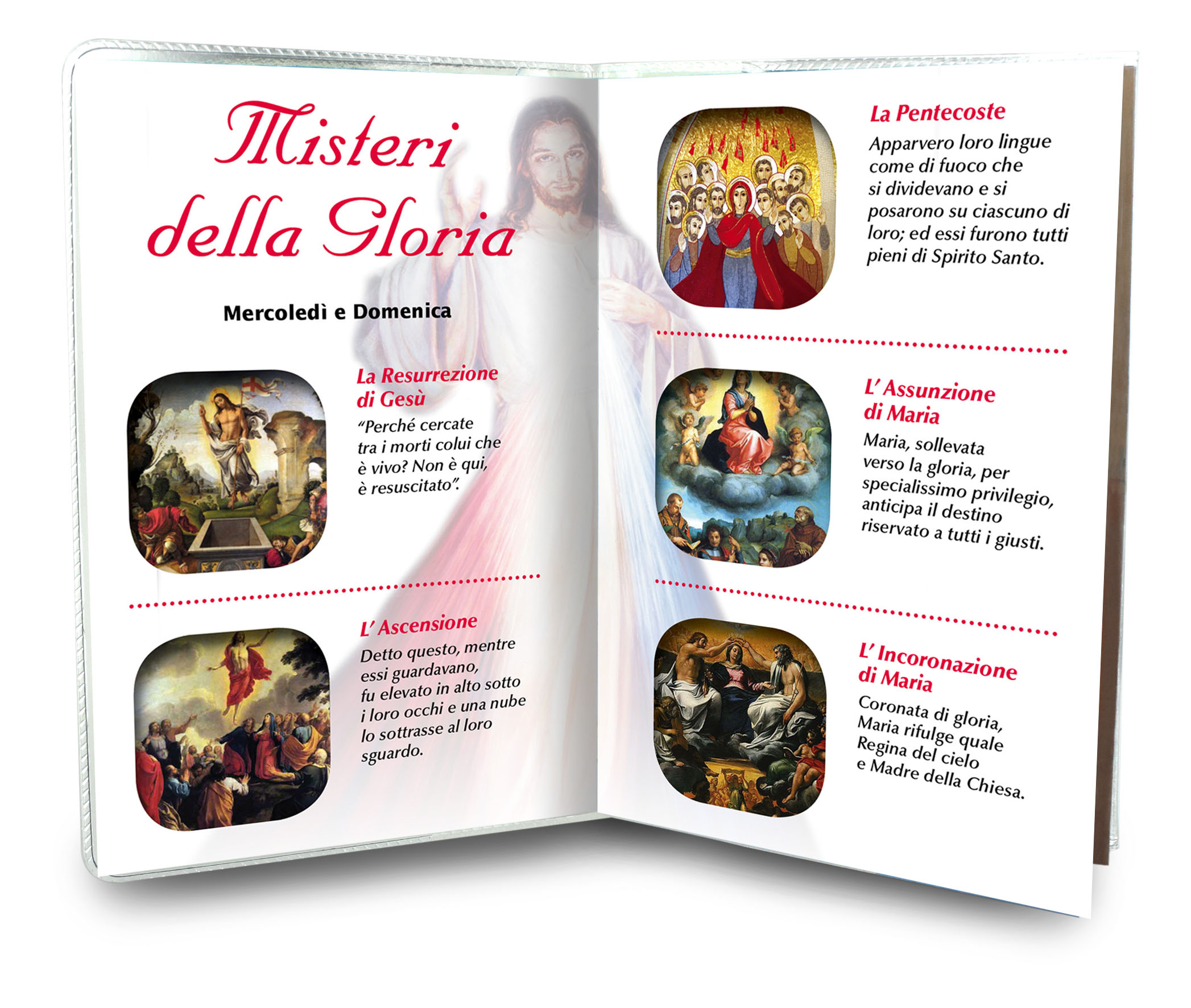 Nell'interno troviamo la spiegazione di come recitare il Santo Rosario ed una preghiera di consacrazione a Gesù misericordioso.
