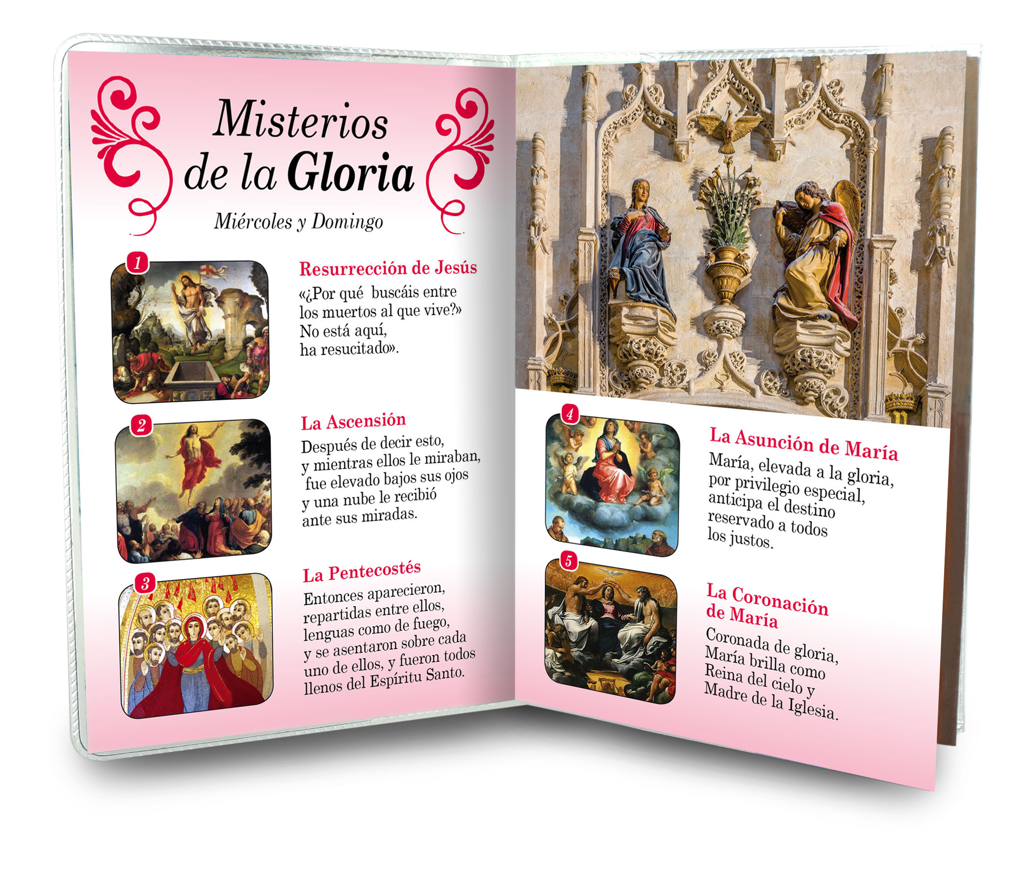Il libretto, composto da 16 pagine, si presenta con una copertina in plastica trasparente e nell'interno vi è un piccolo rosario con i grani tipo perlina del diamero di mm 4.