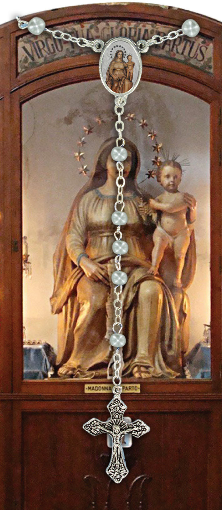 Nell'interno troviamo la spiegazione di come recitare il Santo Rosario ed una preghiera dedicata alla Santissima Vergine del Parto.