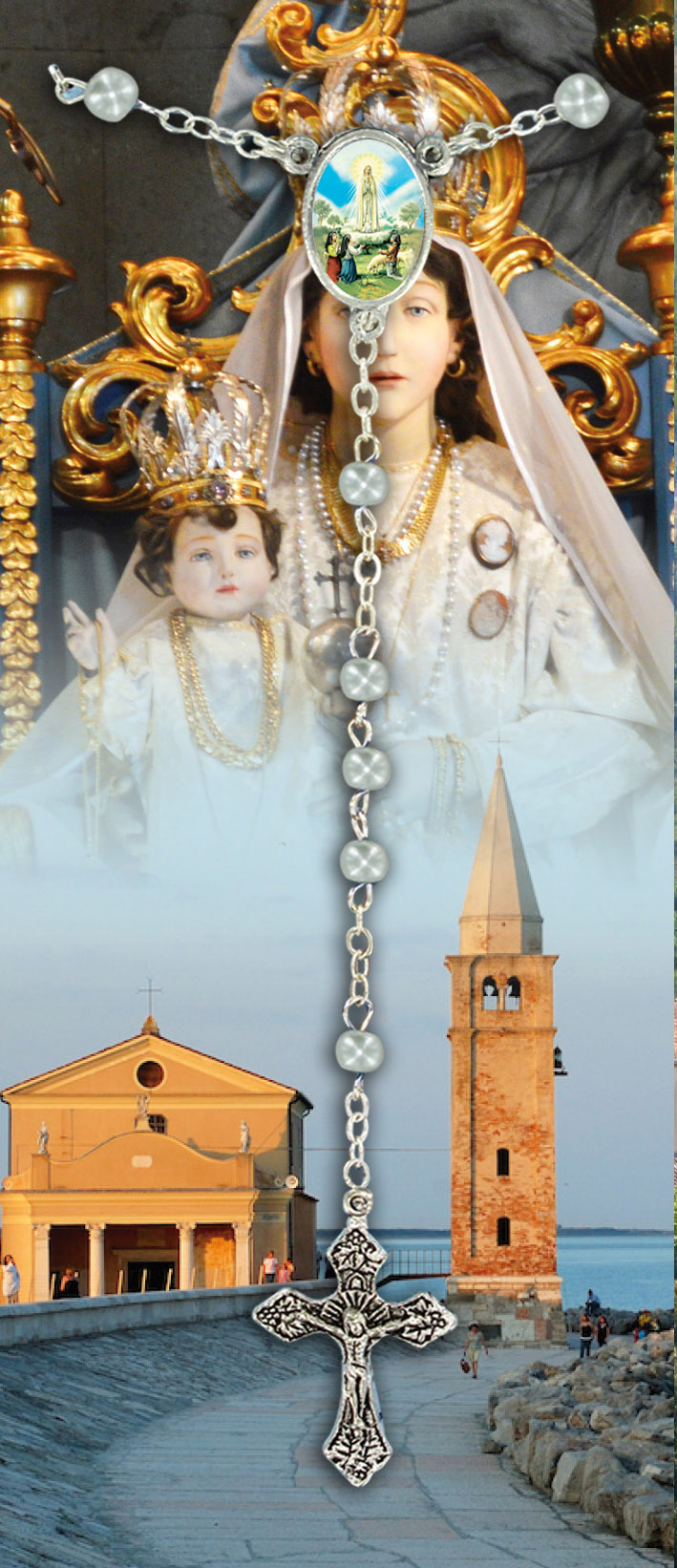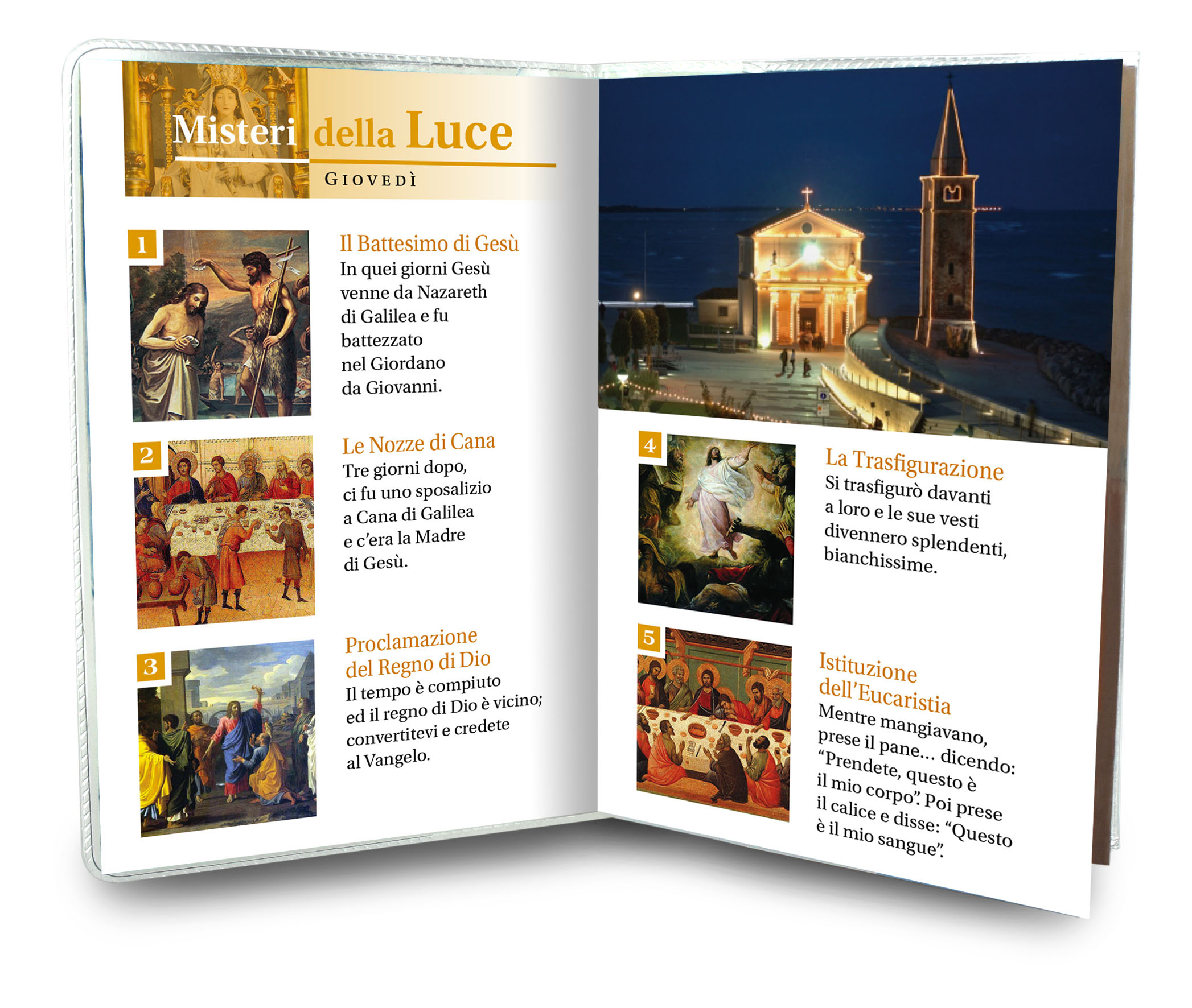 Il libretto, composto da 16 pagine, si presenta con una copertina in plastica trasparente e nell'interno vi è un piccolo rosario con i grani tipo perlina del diamero di mm 4.