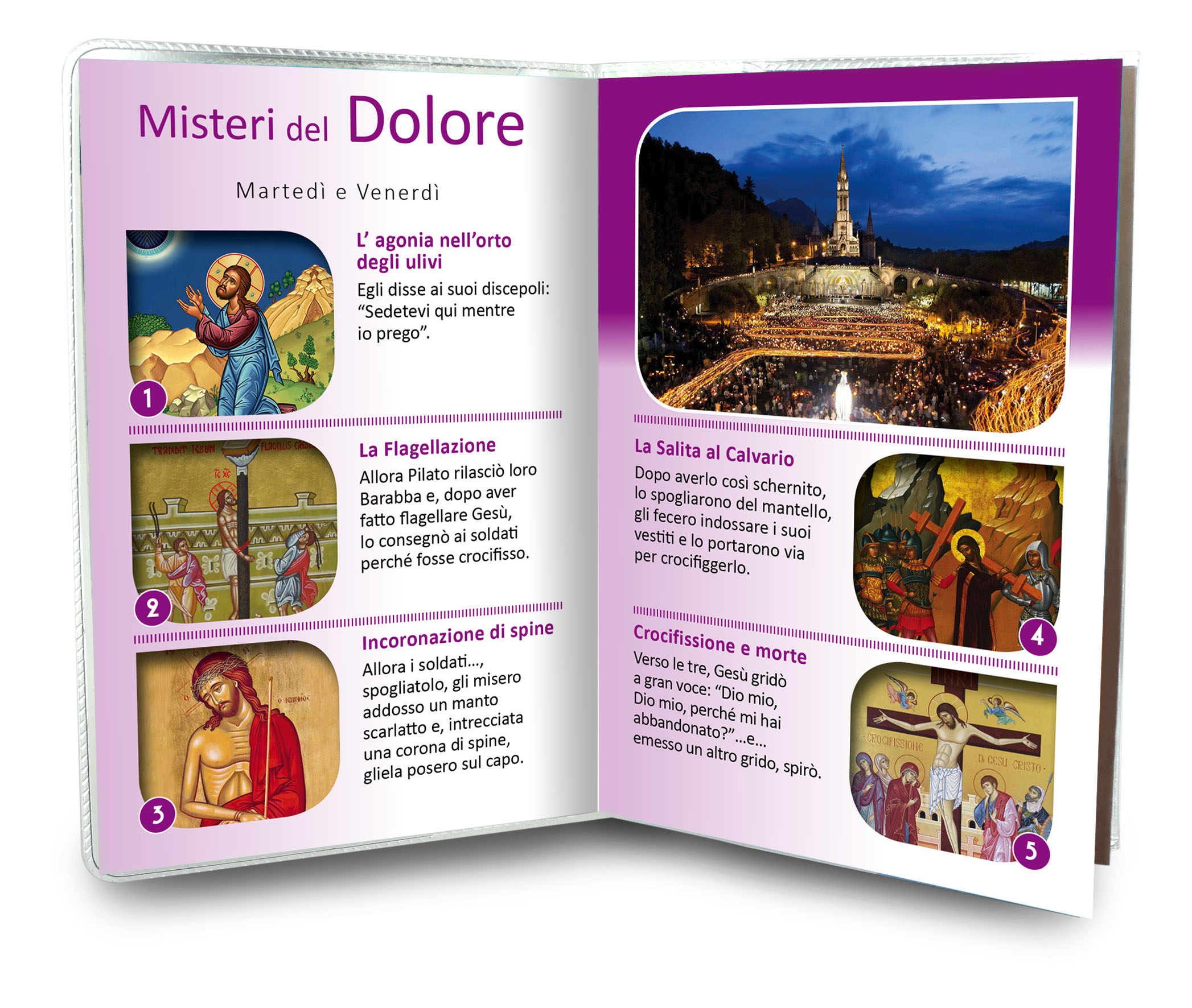 Nell'interno troviamo la spiegazione di come recitare il Santo Rosario e una preghiera dedicata alla Madonna di Lourdes.