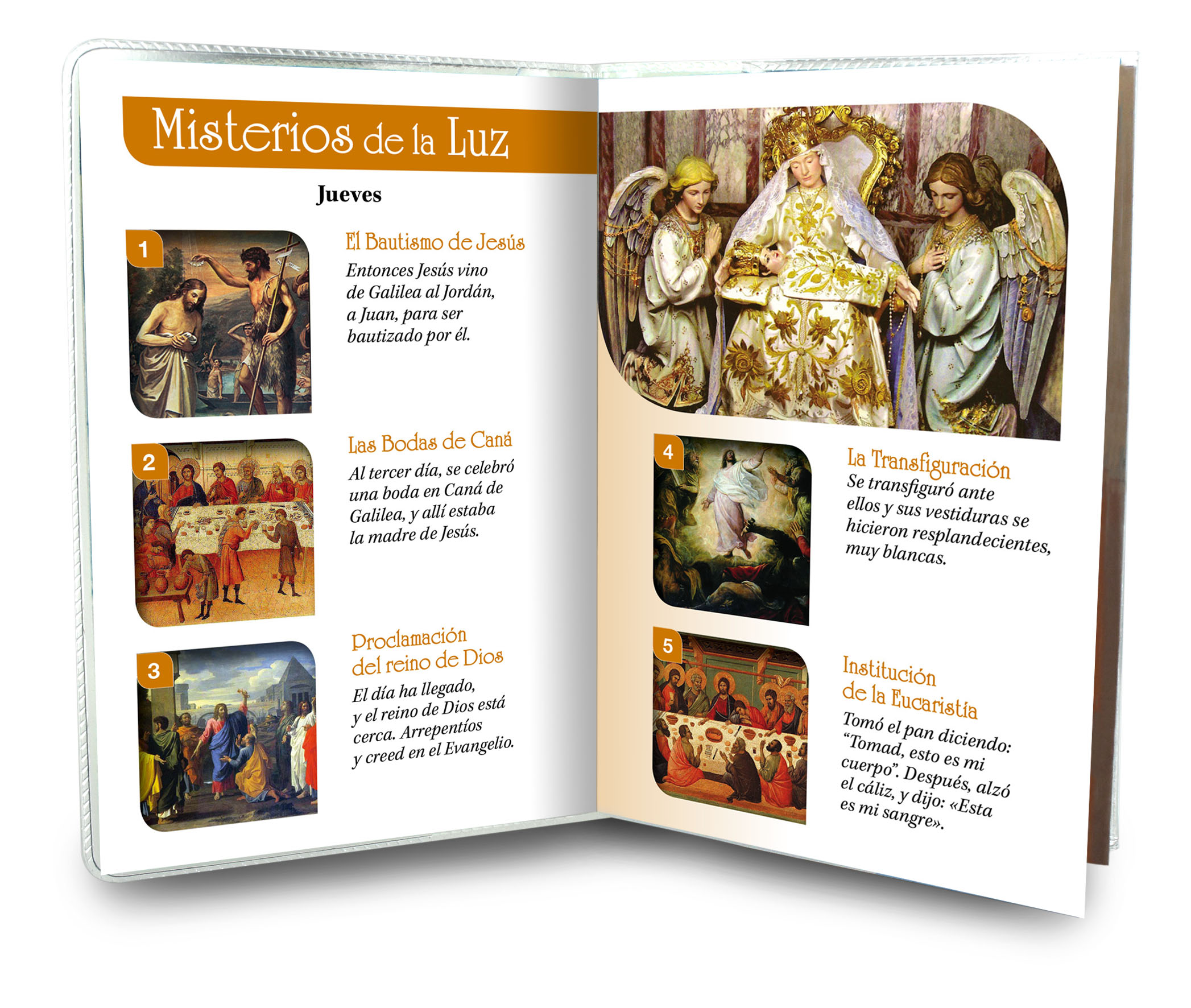 Il libretto, composto da 16 pagine, si presenta con una copertina in plastica trasparente e nell'interno vi è un piccolo rosario con i grani tipo perlina del diamero di mm 4.