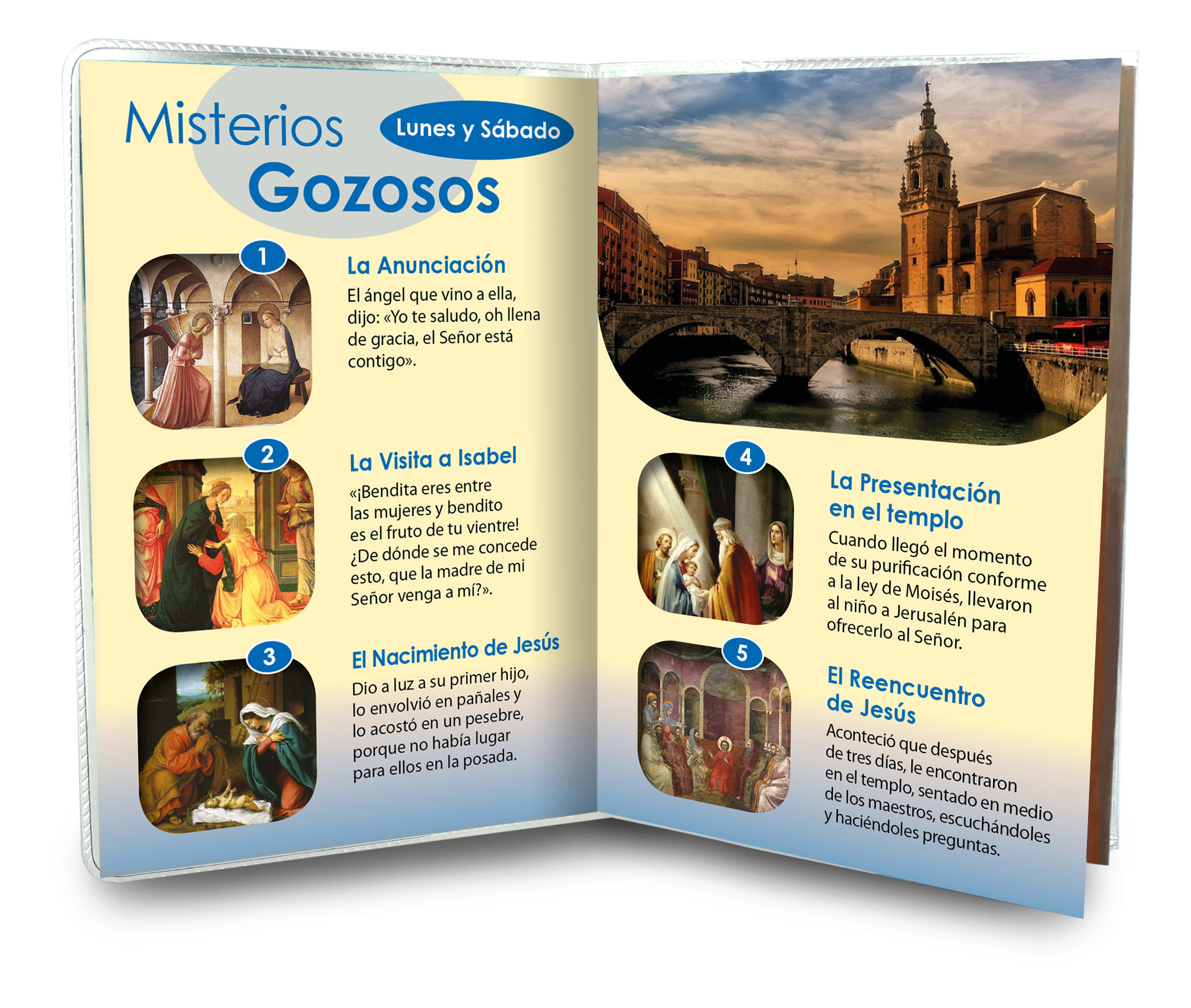 Il libretto, composto da 16 pagine, si presenta con una copertina in plastica trasparente e nell'interno vi è un piccolo rosario con i grani tipo perlina del diamero di mm 4.