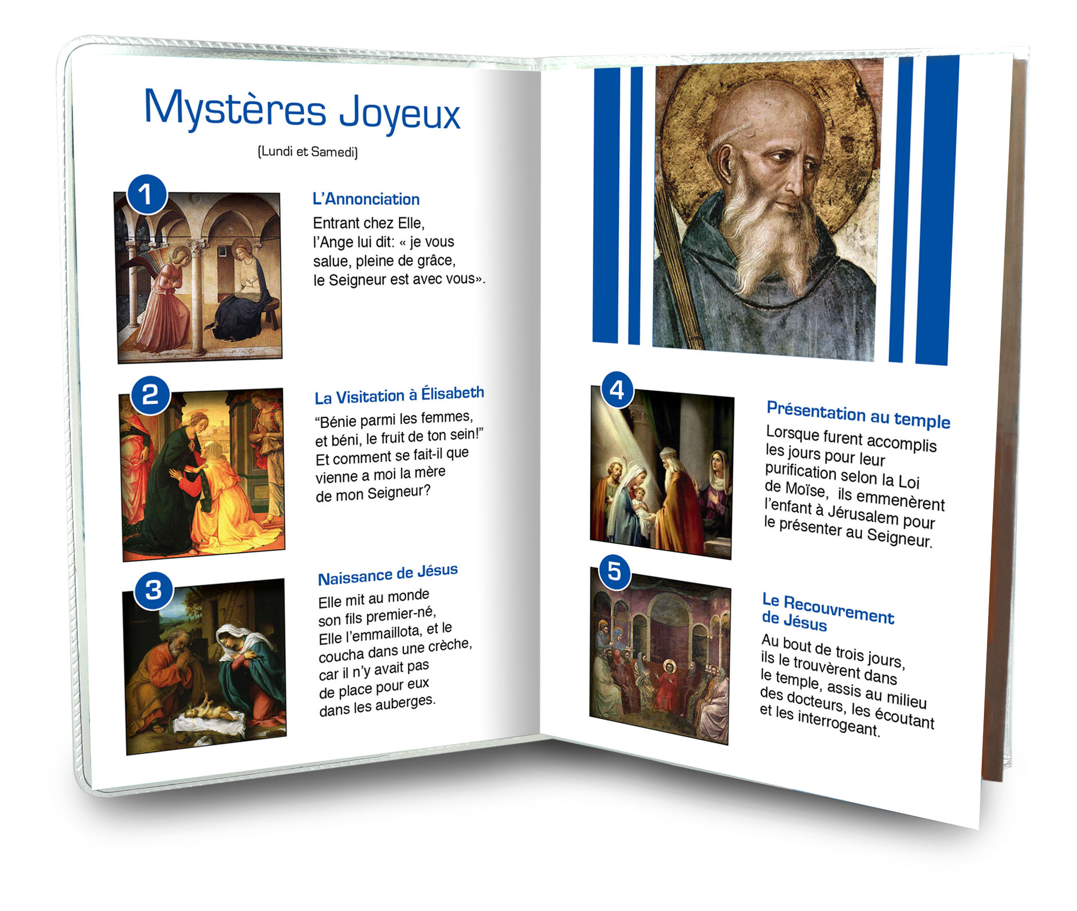 Il libretto, composto da 12 pagine, si presenta con una copertina in plastica trasparente e nell'interno vi è un piccolo rosario con i grani tipo perlina del diamero di mm 4.
