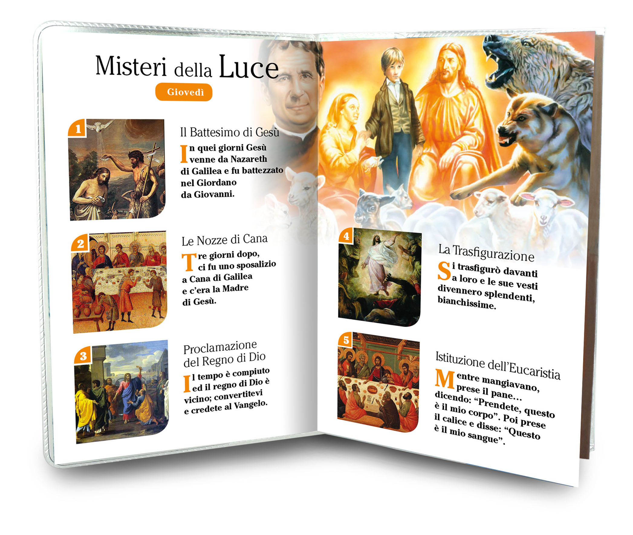 Nell'interno troviamo la spiegazione di come recitare il Santo Rosario ed una preghiera dedicata a San Giovanni Bosco e una dedicata a Maria Ausiliatrice.