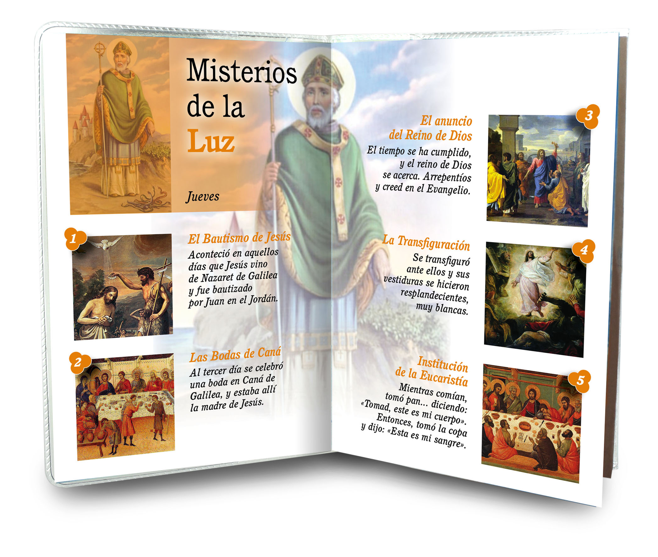 Il libretto, composto da 16 pagine, si presenta con una copertina in plastica trasparente e nell'interno vi è un piccolo rosario con i grani tipo perlina del diamero di mm 4.