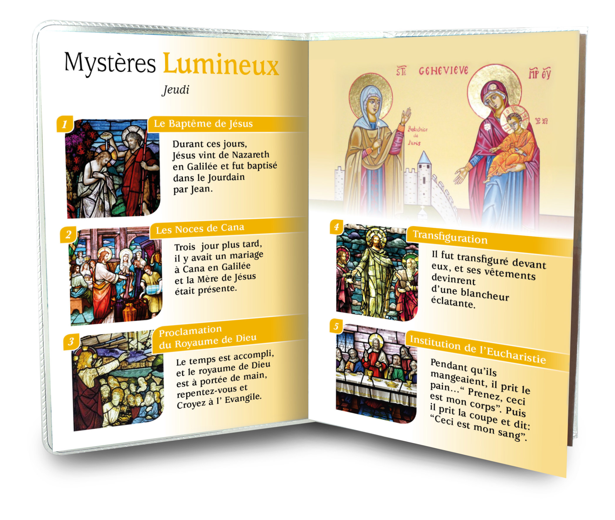 Nell'interno troviamo la spiegazione di come recitare il Santo Rosario ed una preghiera dedicata a Santa Genoveffa.