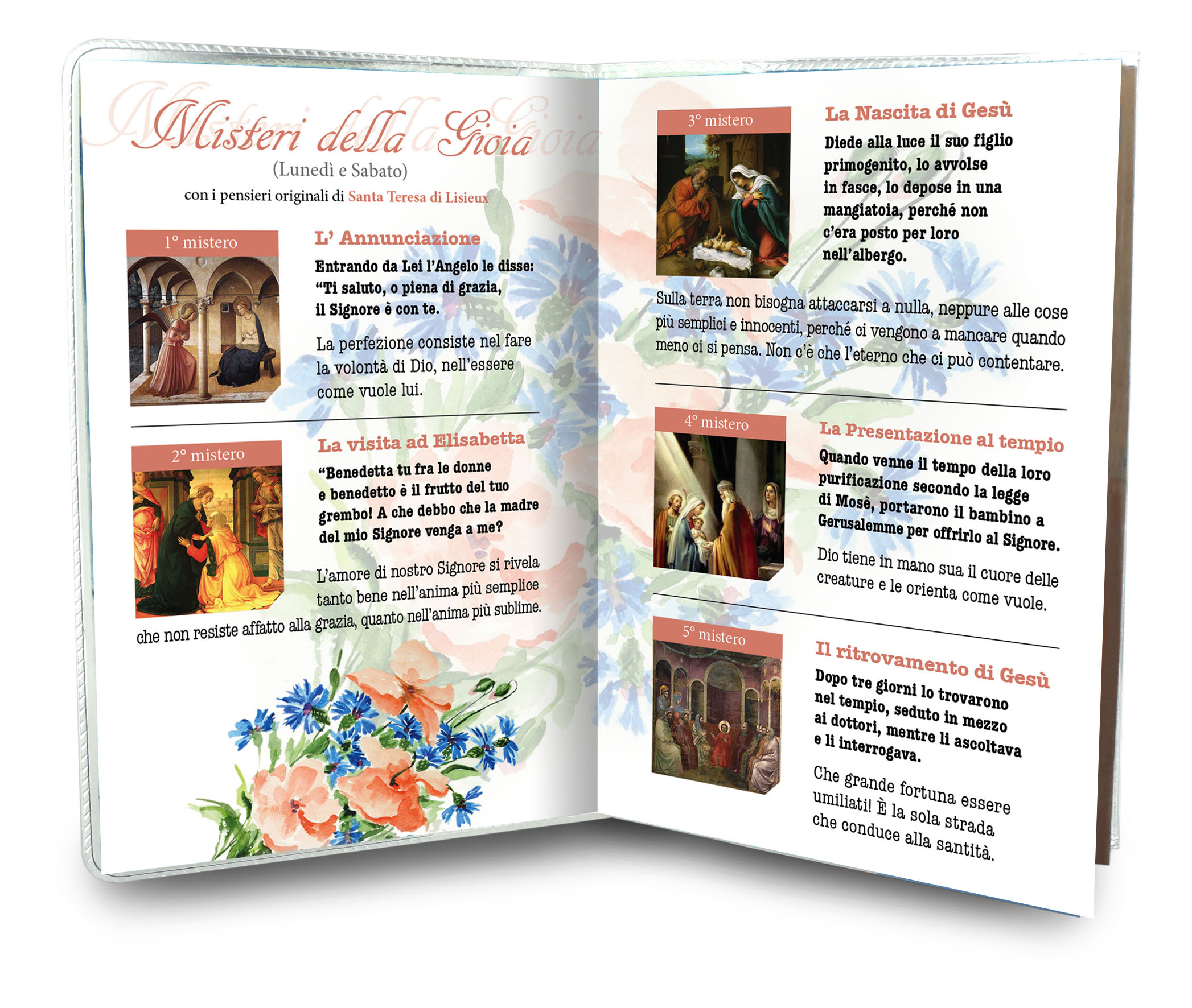 Nell'interno troviamo la spiegazione di come recitare il Santo Rosario e una preghiera scritta da Santa Teresa di Lisieux.