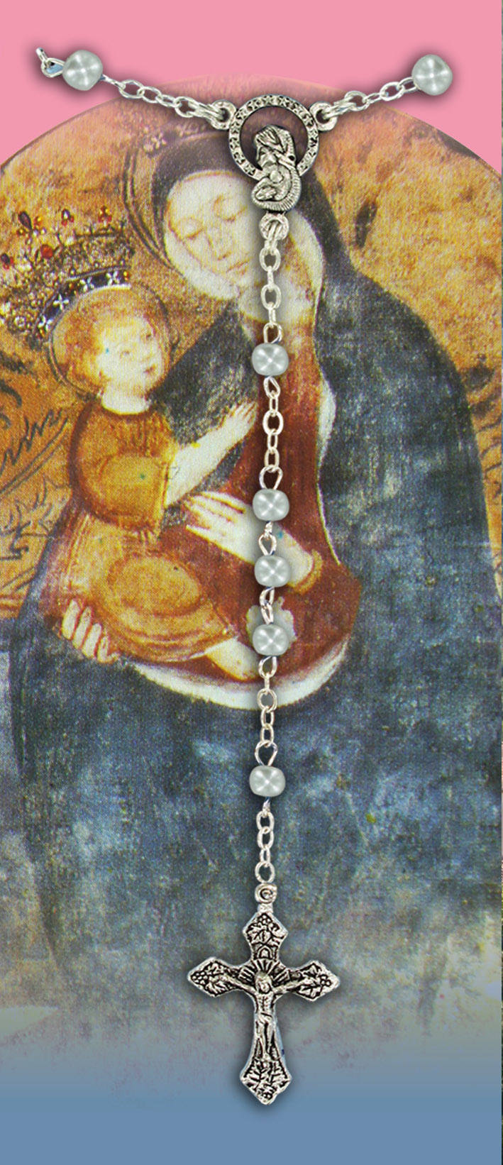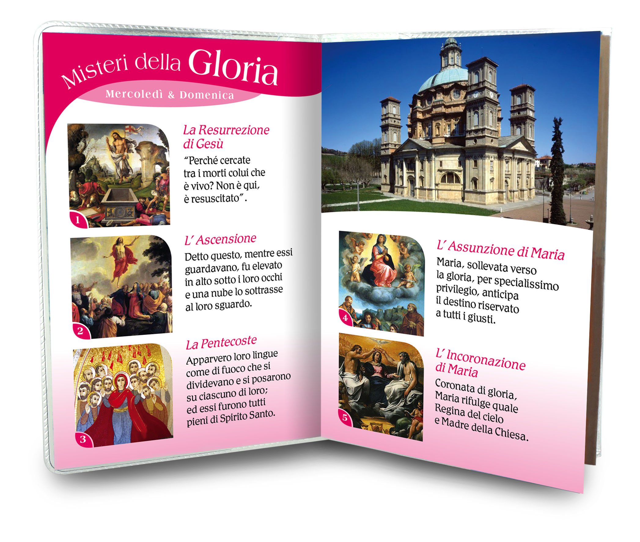Il libretto, composto da 16 pagine, si presenta con una copertina in plastica trasparente e nell'interno vi è un piccolo rosario con i grani tipo perlina del diamero di mm 4.