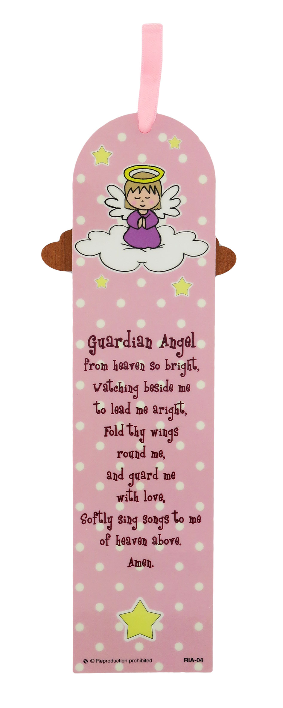 Segnalibro Angelo Custode a forma di cupola con fiocchetto rosa - 5,5 x 22,5 cm - inglese