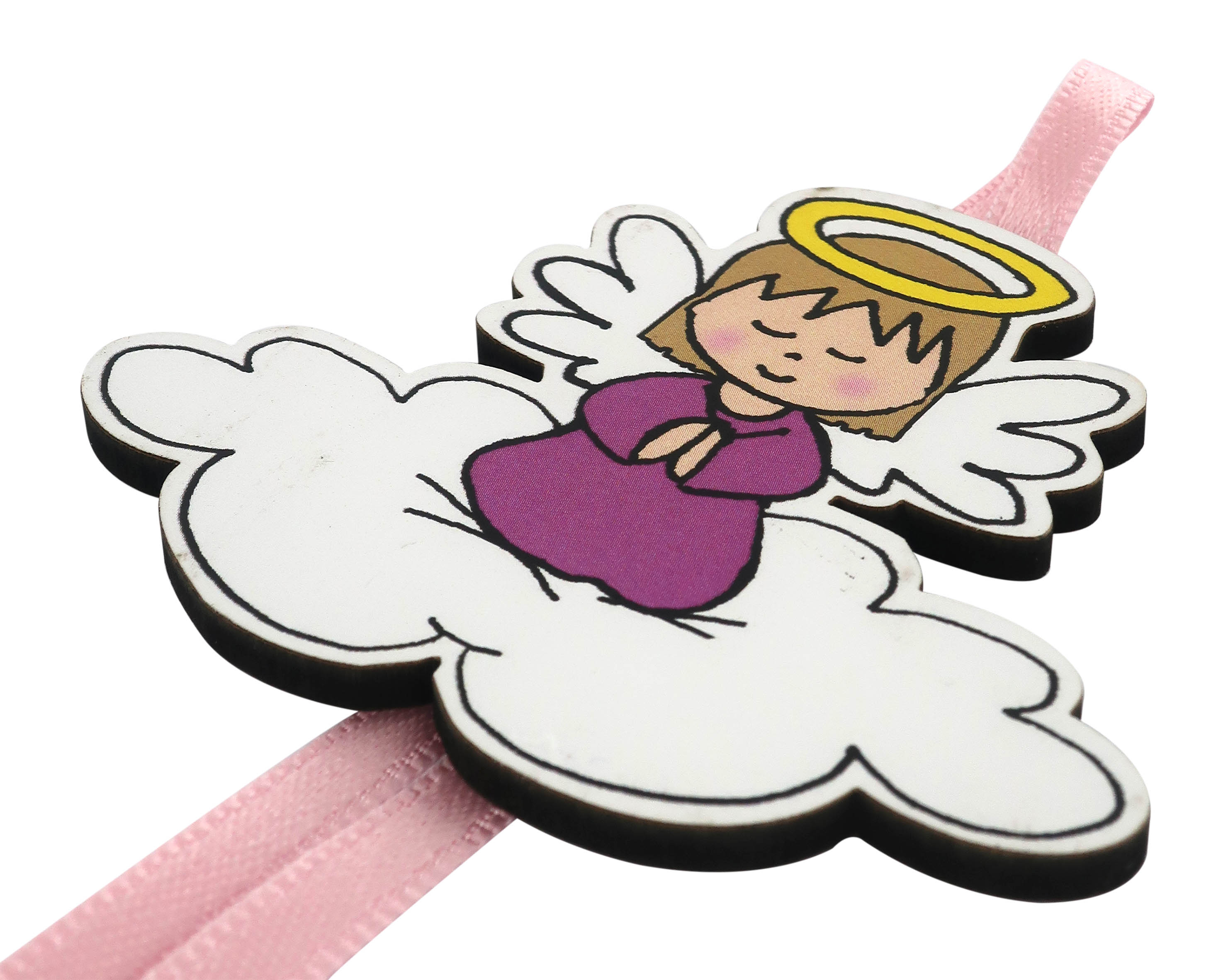 Segnalibro Angelo Custode a forma di cupola con fiocchetto rosa- 5,5 x 22,5 cm portoghese