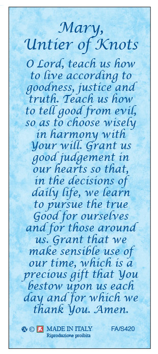 Segnalibro calamitato Maria che scioglie i Nodi (inglese)- 4 x 9,7 cm