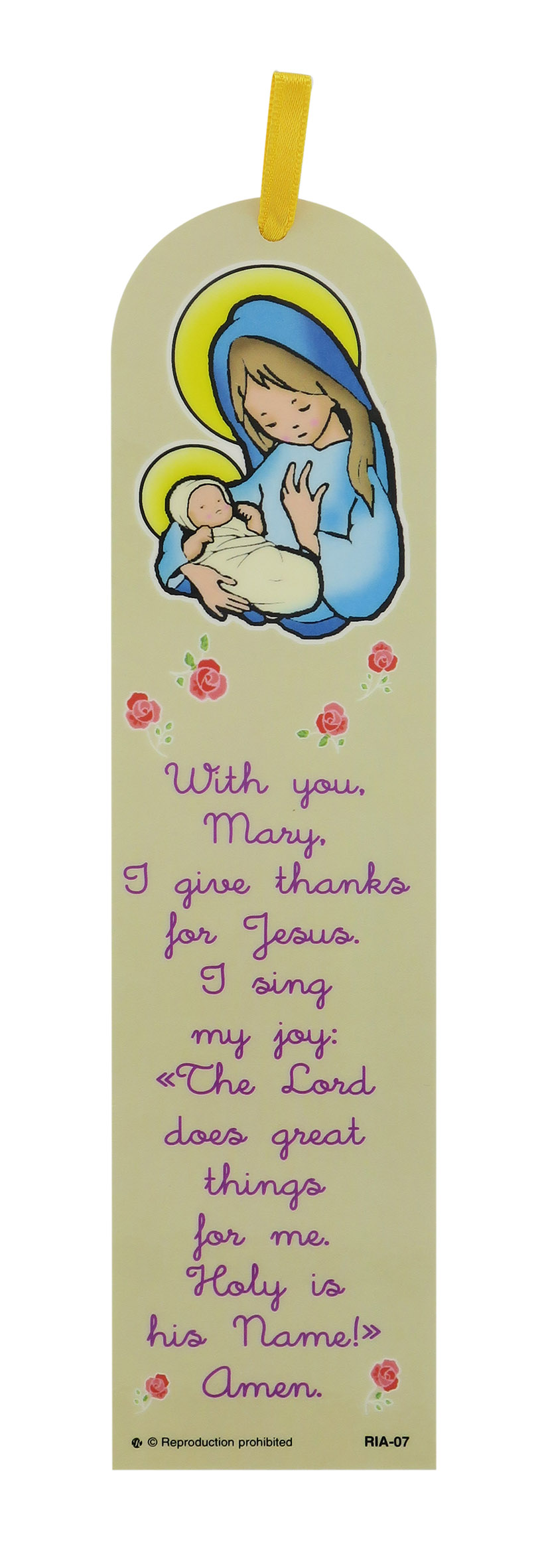 Segnalibro con Ave Maria a forma di cupola con fiocchetto giallo - 5,5 x 22,5 cm - inglese