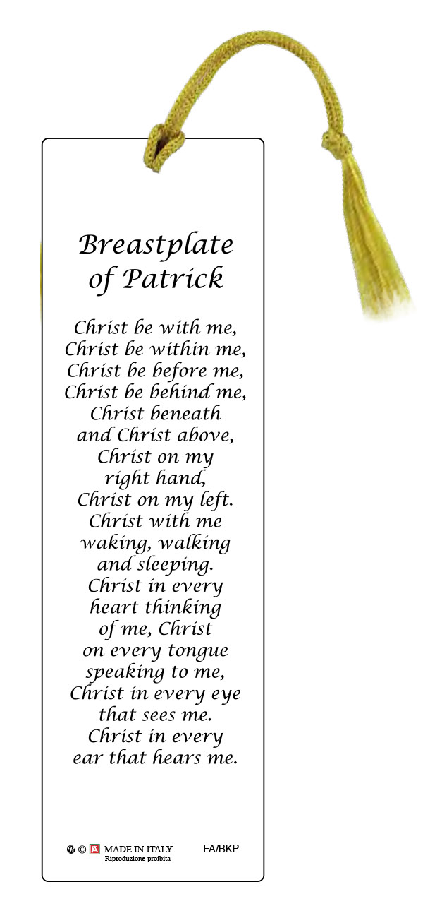 Segnalibro rettangolare con fiocchetto e l'immagine della Croce (Lough Derg) con preghiera in inglese.