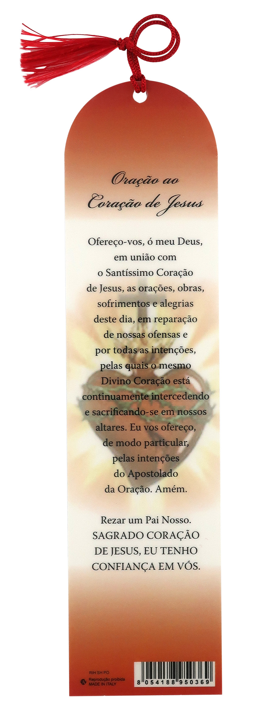 Segnalibro a forma di cupola con fiocchetto verde e immagine del Sacro cuore di Gesù e preghiera in portoghese