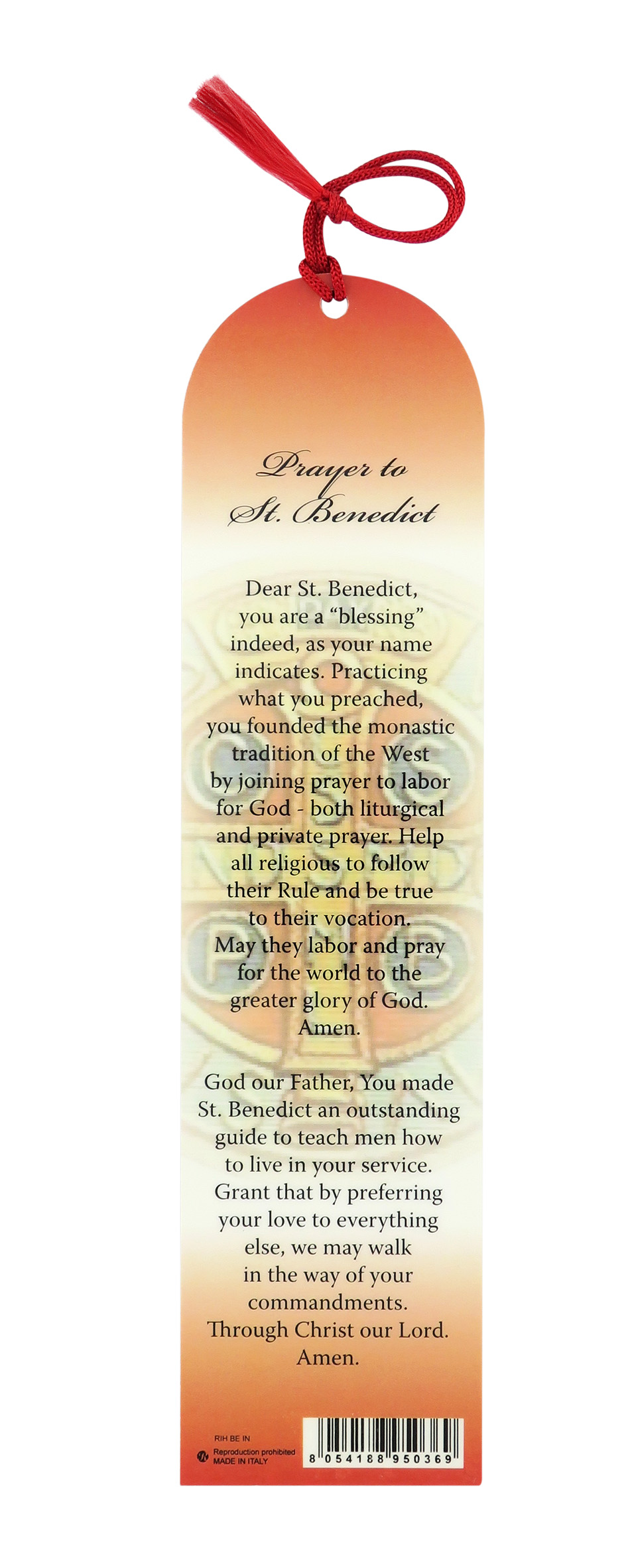 Segnalibro San Benedetto a forma di cupola con fiocchetto rosso - 5,5 x 22,5 cm - inglese