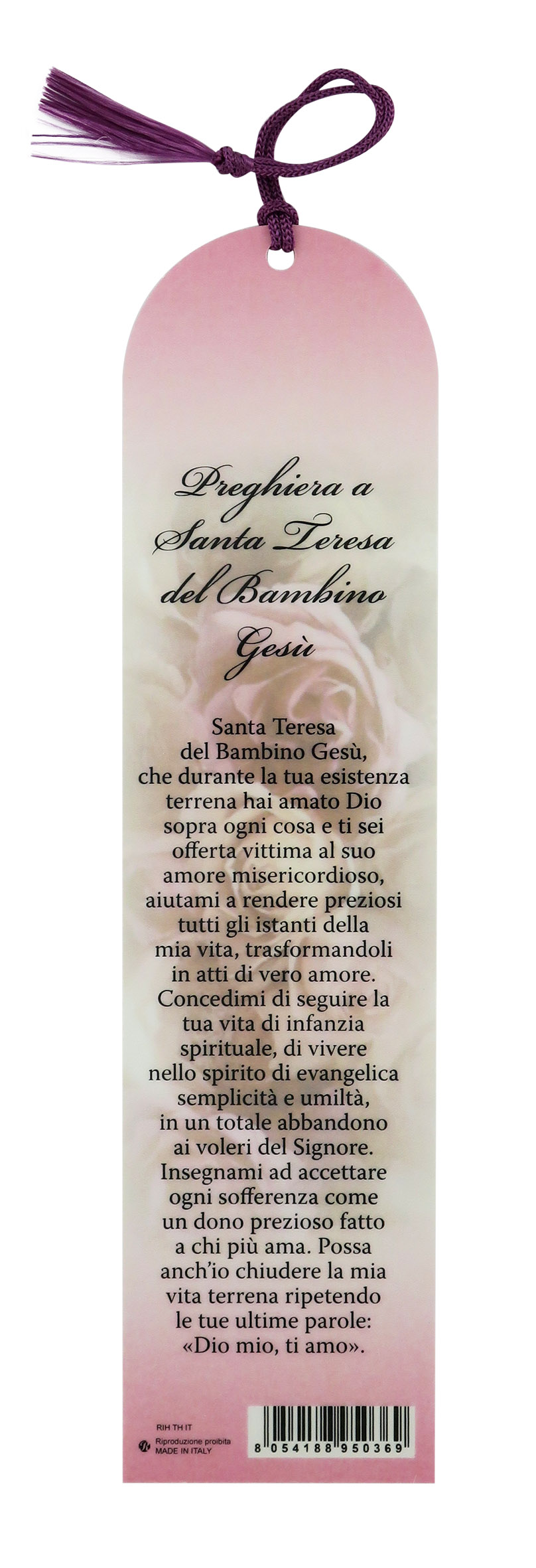 Segnalibro Santa Teresa a forma di cupola con fiocchetto viola - 5,5 x 22,5 cm