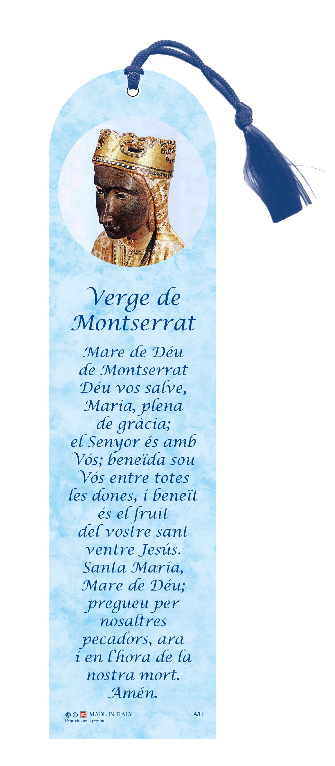 Segnalibro a forma di cupola con fiocchetto rosso e immagine della Vergine di Montserrat