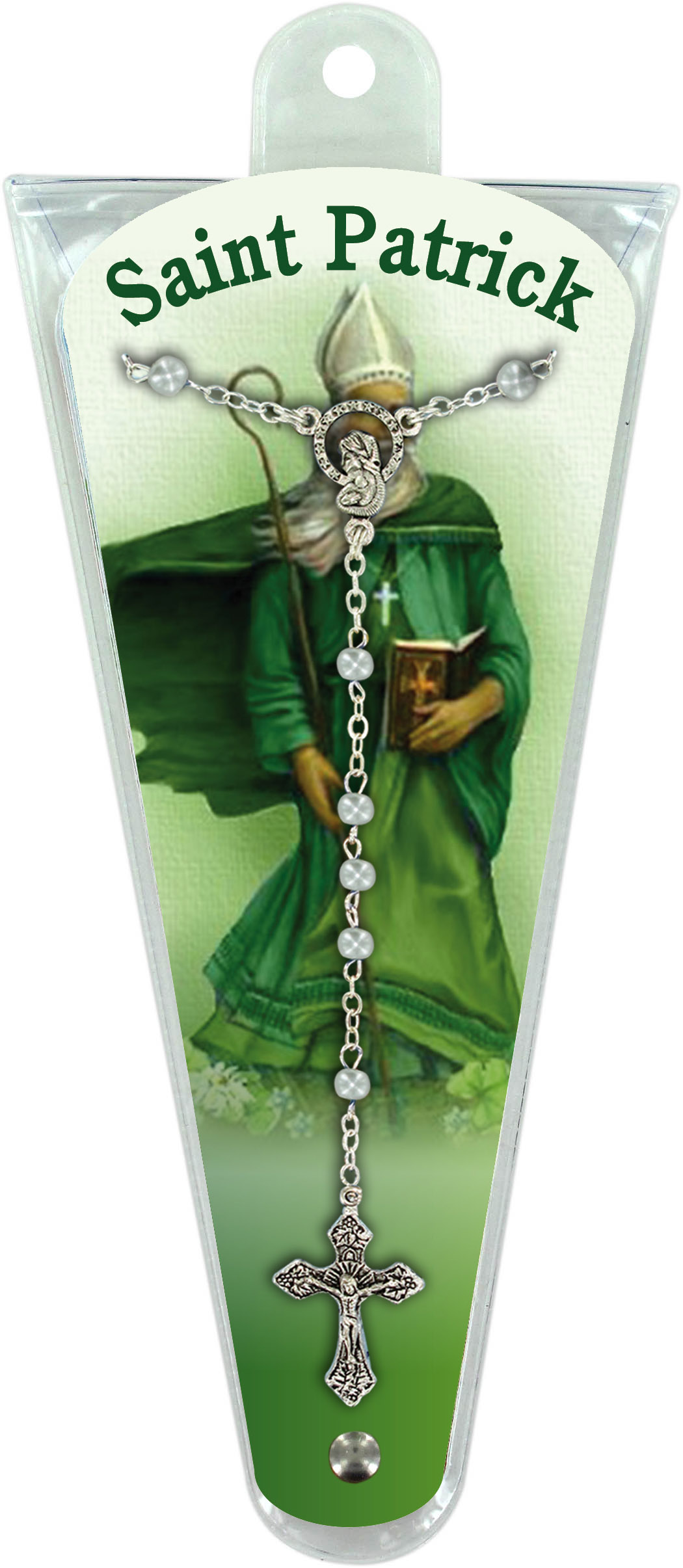 Sul primo e sull'ultimo petalo è stampata l'immagine di Saint Patrick mentre sugli altri due sono stampati i misteri del rosario in inglese.