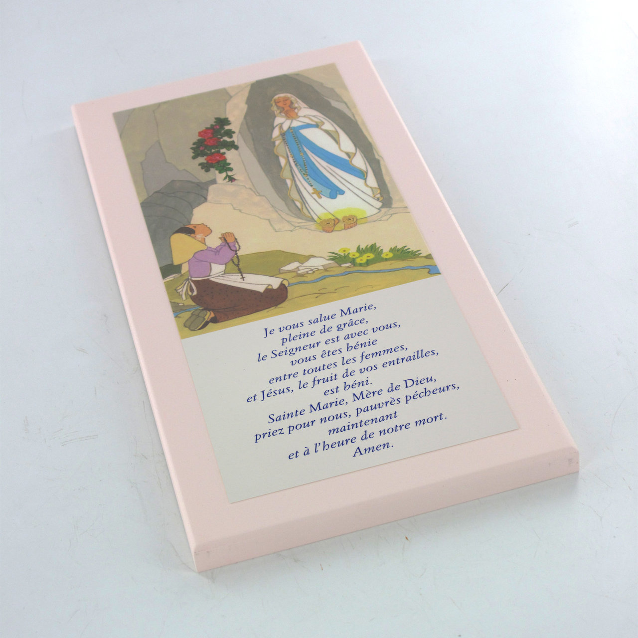 Tavola raffigurante la Madonna di Lourdes con la preghiera dell'Ave Maria scritta in FRANCESE.