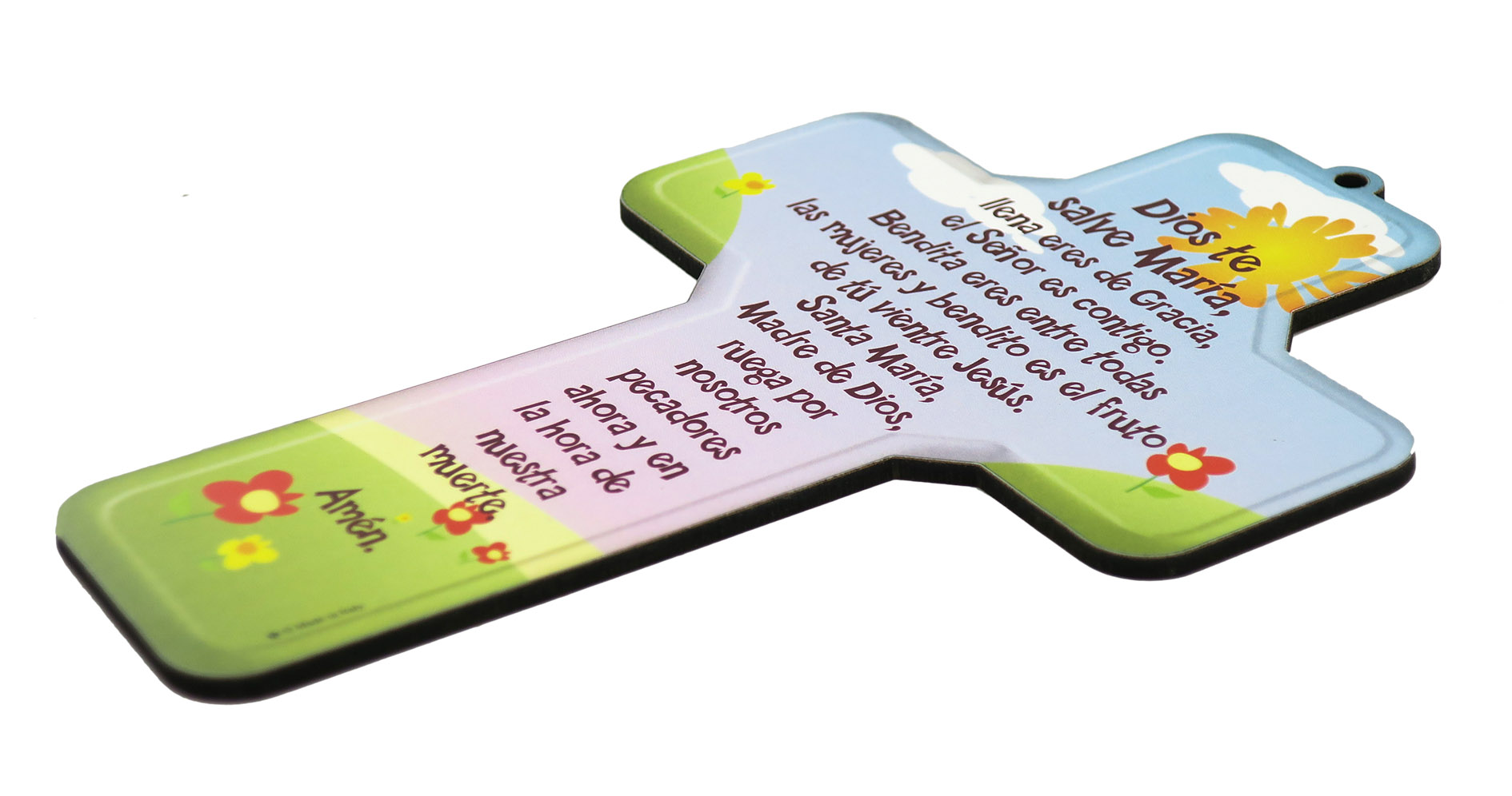 Crocifisso per bambini con la preghiera dell'Ave Maria in spagnolo - 12 x 18 cm