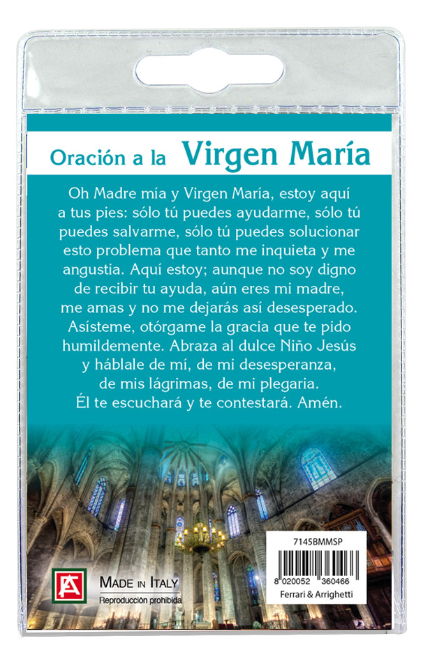 Nell'interno del blister c'è anche un cartoncino con l'immagine di Santa María e sul retro del cartoncino stesso una preghiera a lei dedicata.