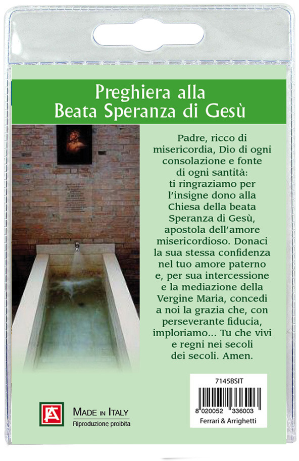 Calamita Beata Speranza di Gesù in metallo nichelato con preghiera in italiano