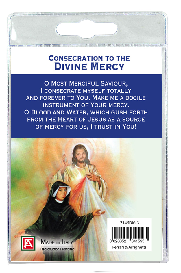 Nell'interno del blister c'è anche un cartoncino con l'immagine della Divina Misericordia e sul retro del cartoncino stesso una preghiera a lei dedicata.