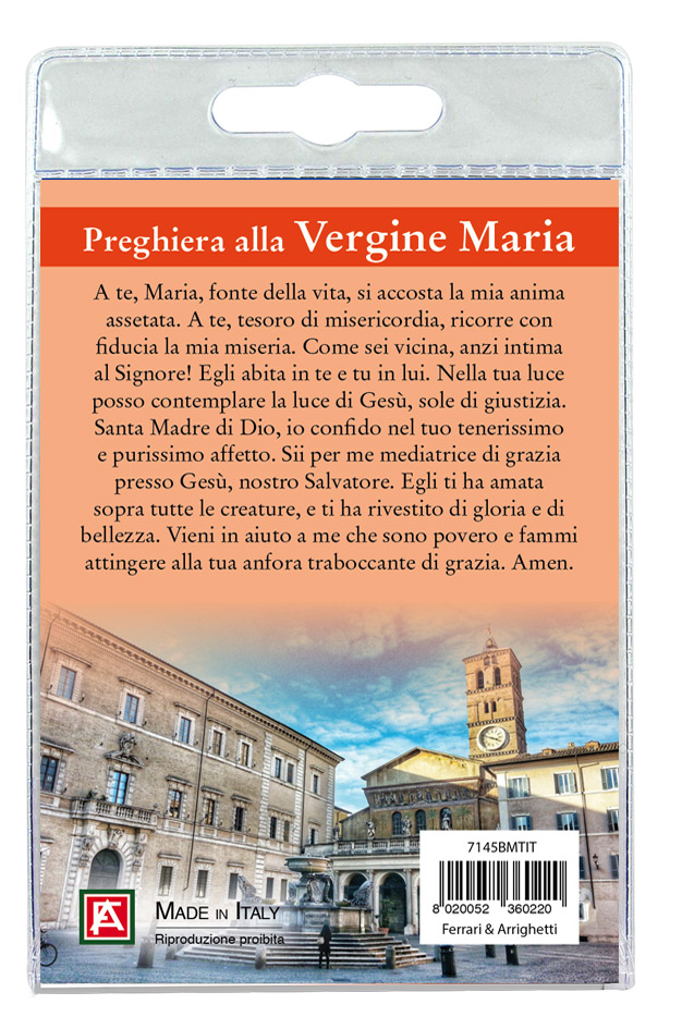 Nell'interno del blister c'è anche un cartoncino con l'immagine della Basilica di Santa Maria e sul retro del cartoncino stesso una preghiera dedicata alla Vergine Maria.