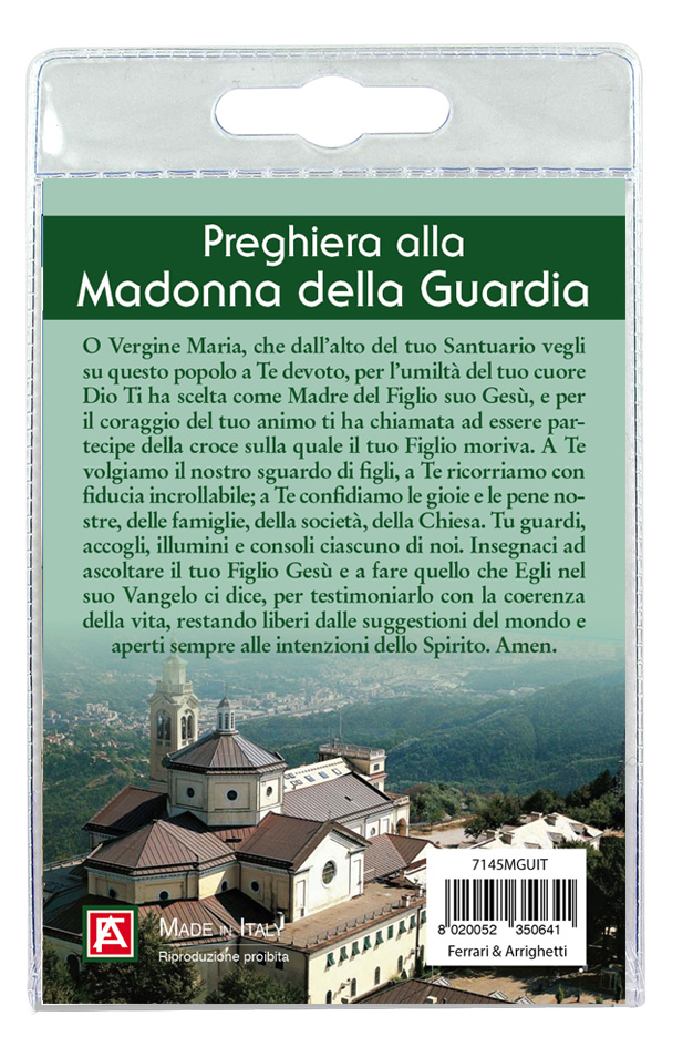 Nell'interno del blister c'è anche un cartoncino con l'immagine della Madonna e sul retro del cartoncino stesso una preghiera a lei dedicata.