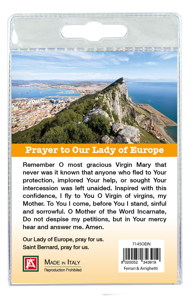 Nell'interno del blister c'è anche un cartoncino con l'immagine del Santuario e sul retro del cartoncino stesso una preghiera dedicata a Our Lady of Europe.
