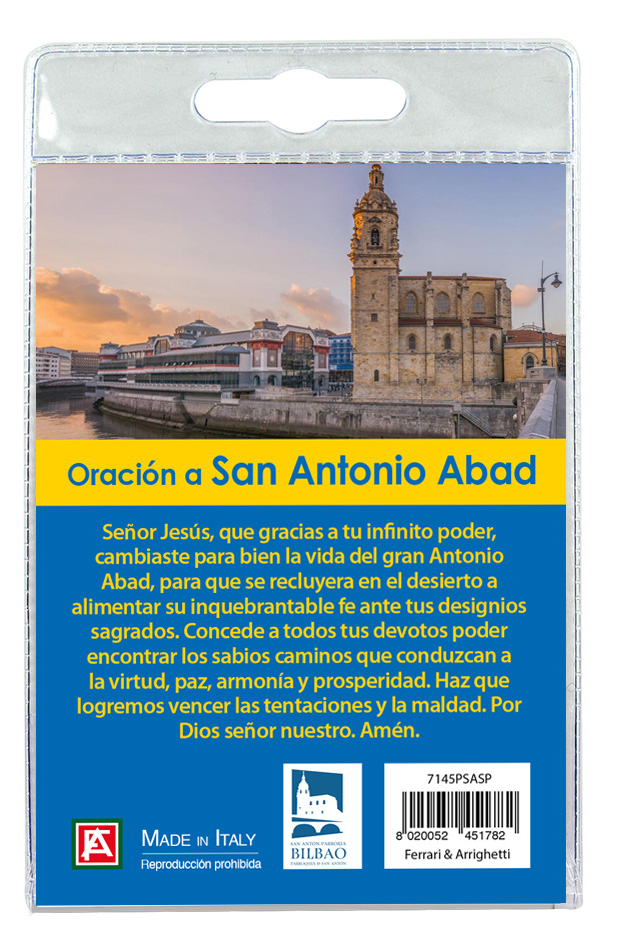 Calamita Parrochia de San Anton in metallo nichelato con preghiera in spagnolo
