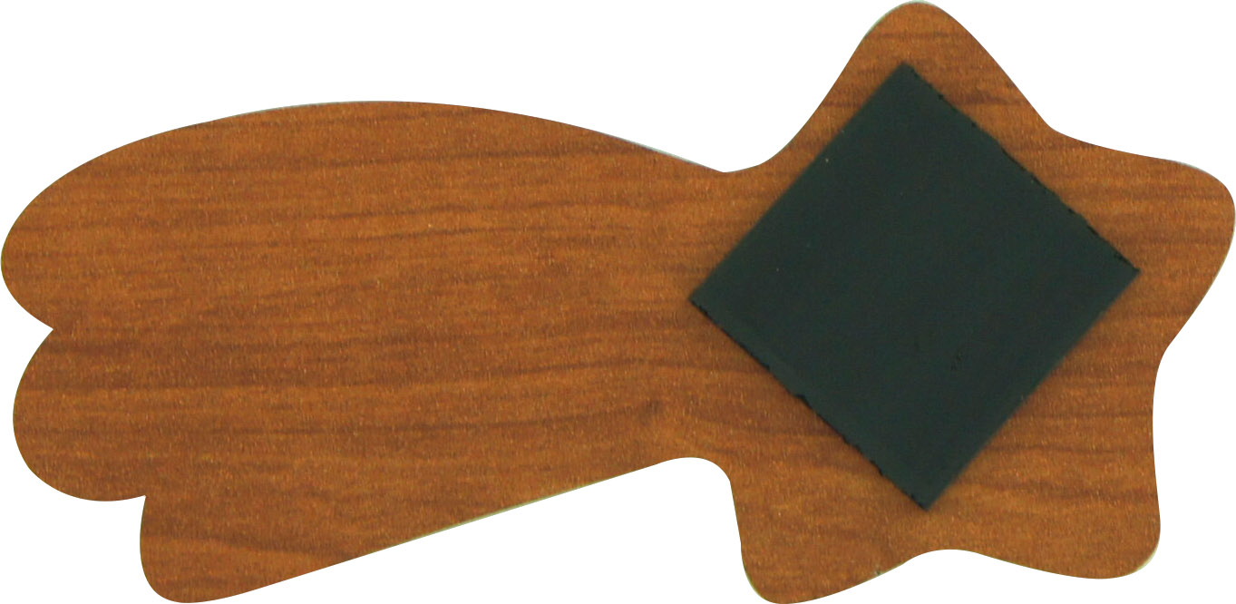 La calamita colorata è in legno mdf a forma di stella cometa raffigurante il presepe con i Magi.