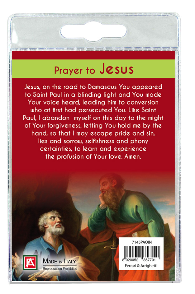 Nell'interno del blister c'è anche un cartoncino con l'immagine del Santo e sul retro del cartoncino stesso una preghiera dedicata a Gesù.