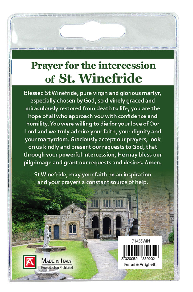 Calamita St. Winefride in metallo nichelato con preghiera in inglese