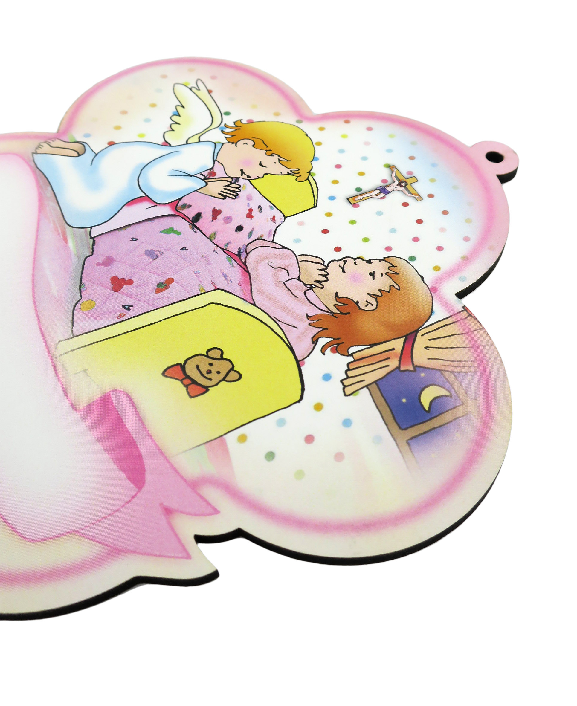 Quadro in legno Angelo custode rosa con nome da compilare - 15 cm x 16 cm