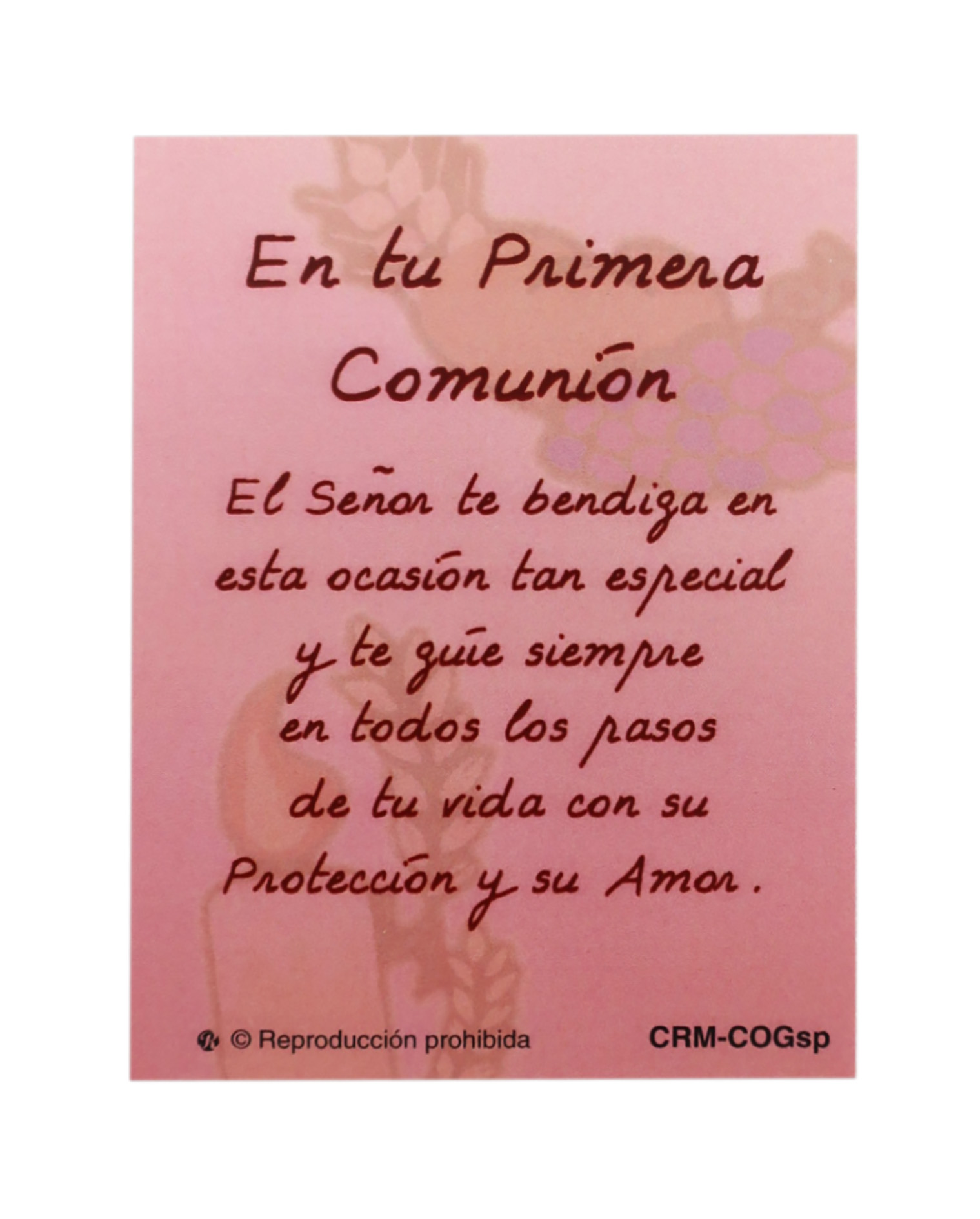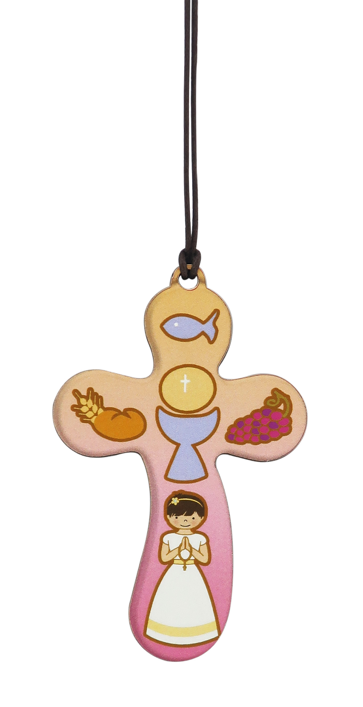 Croce eucaristia per bambina con laccio e preghiera in spagnolo