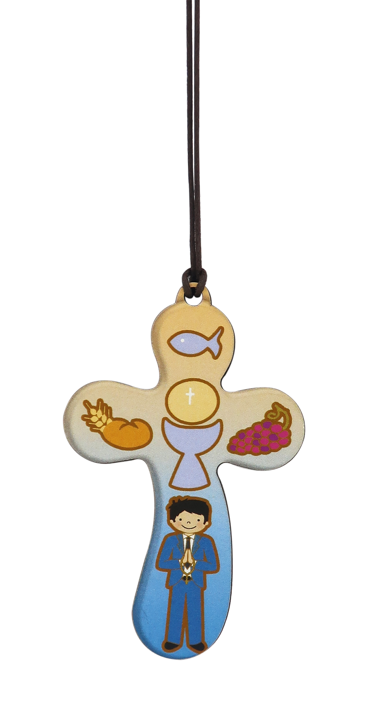 Croce eucaristia per bambino con laccio e preghiera in inglese