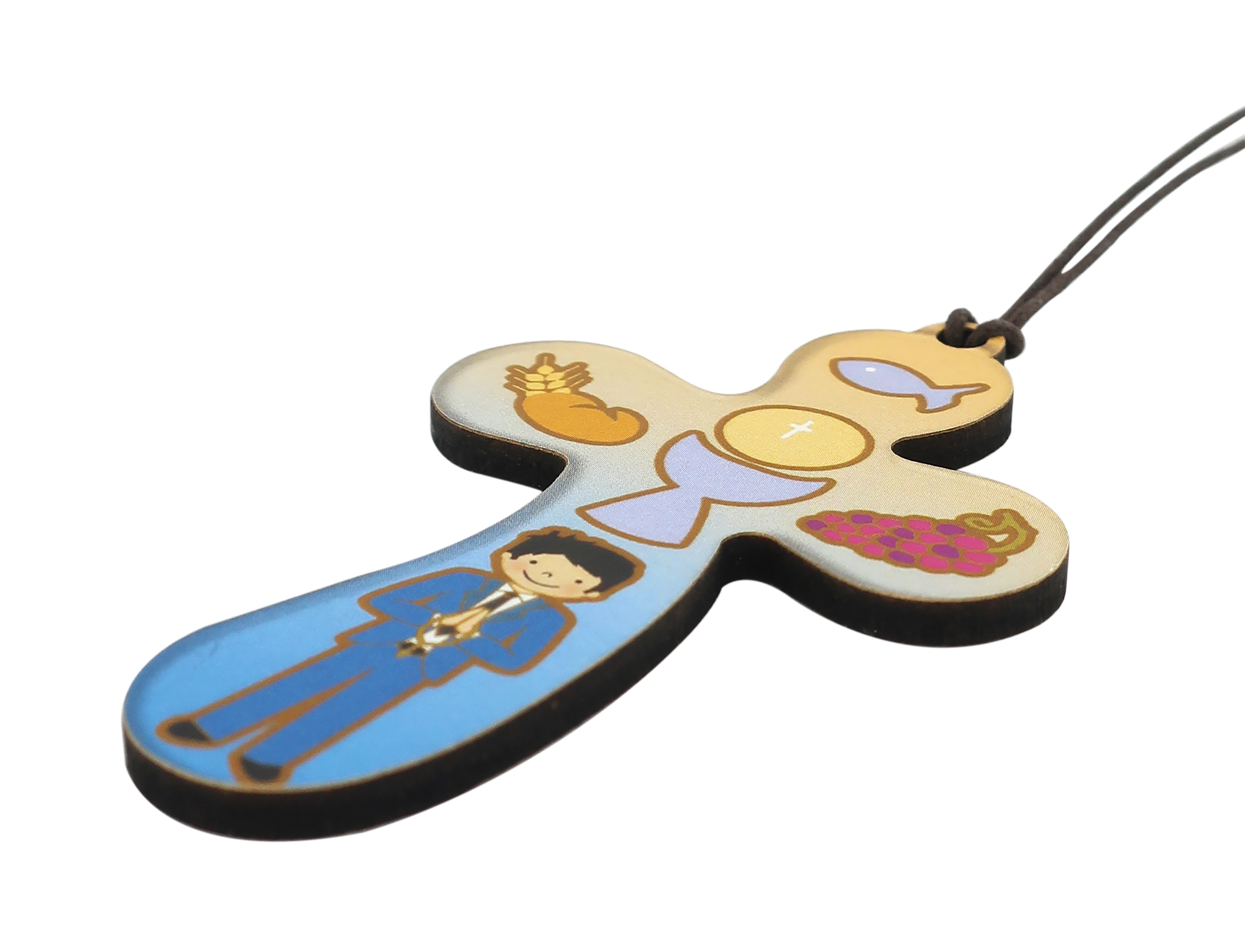Croce eucaristia per bambino con laccio e preghiera in italiano