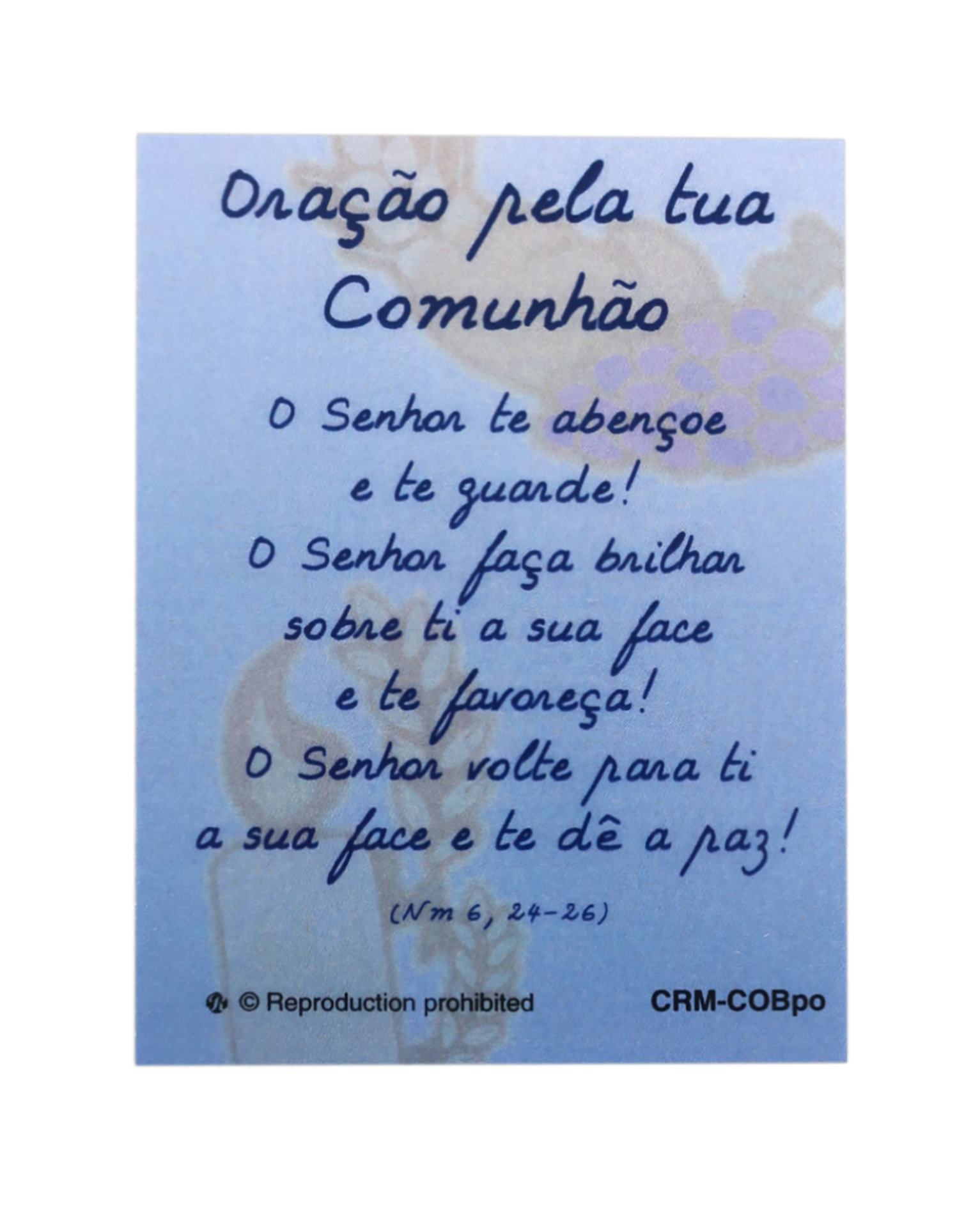 Croce eucaristia per bambino con laccio e preghiera in portoghese