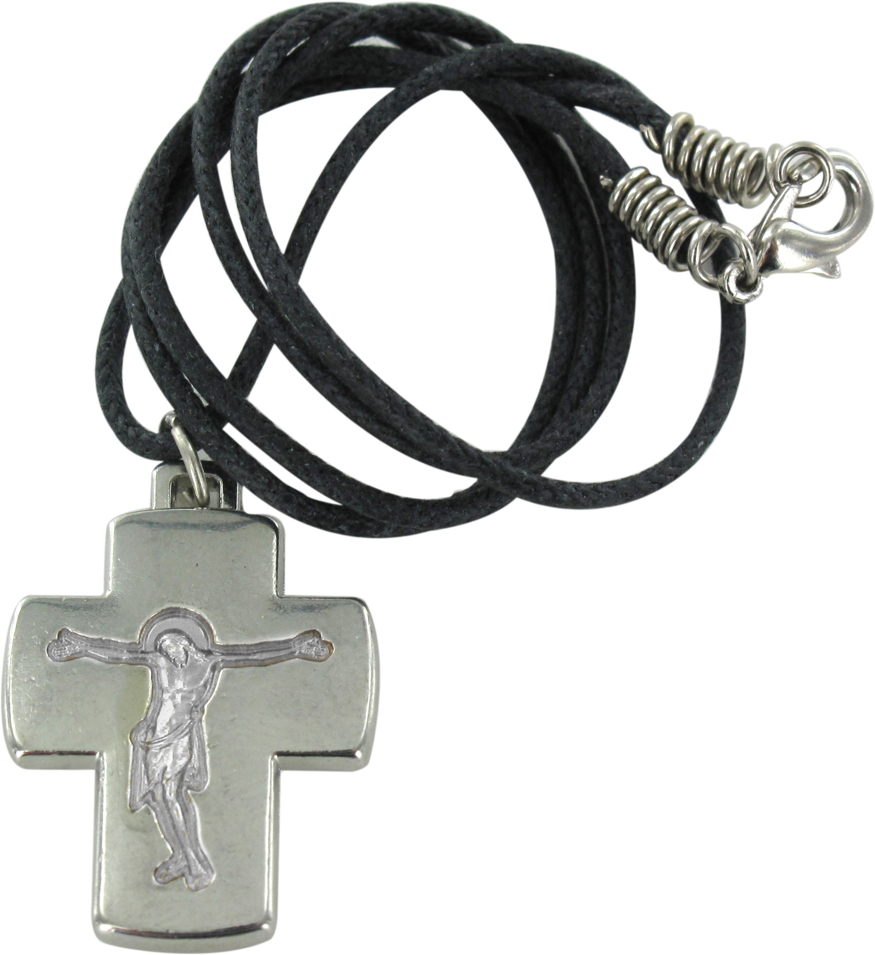 Croce con Cristo inciso in metallo argentato con laccio - 2,5 cm