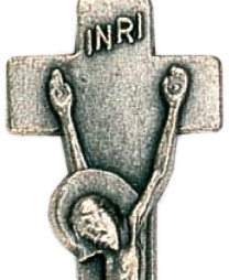 Croce con Cristo stampato in metallo ossidato di misura 5 x 1,7 cm.