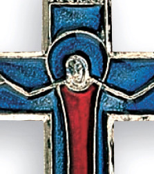 Croce Cristo risorto in metallo nichelato e smalto - 4,5 x 2,5 cm