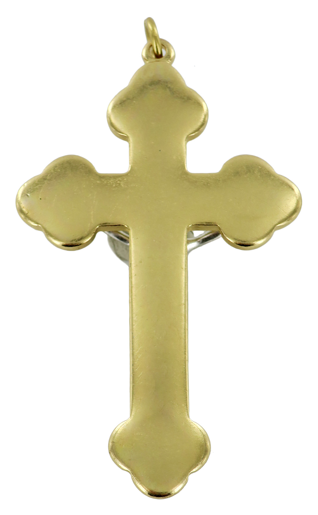 Croce in metallo dorato con smalto bianco e Cristo riportato - 8 cm